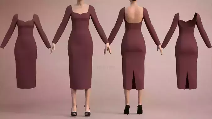 Long Sleeve Sweetheart Neck Bodycon Maxi Dress - Womens Clothing Low-poly 3D model