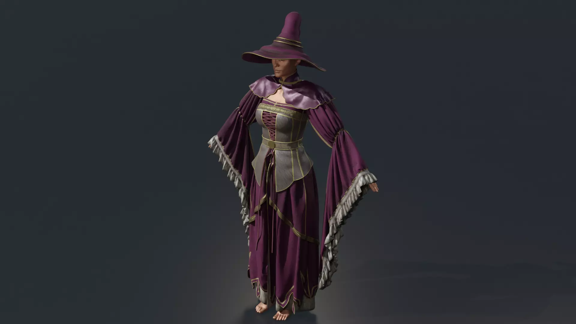 Long-sleeved wizard robe with a hat.The model is made in marvelous format. Edited in Blender and ZBrush and textured in Substance Painter. Textures included. PBR material configuration(base, normal, height, roughness, metallic).Female outfit High Poly ModelMarvelous Designer, blend project OBJ, FBX, STL