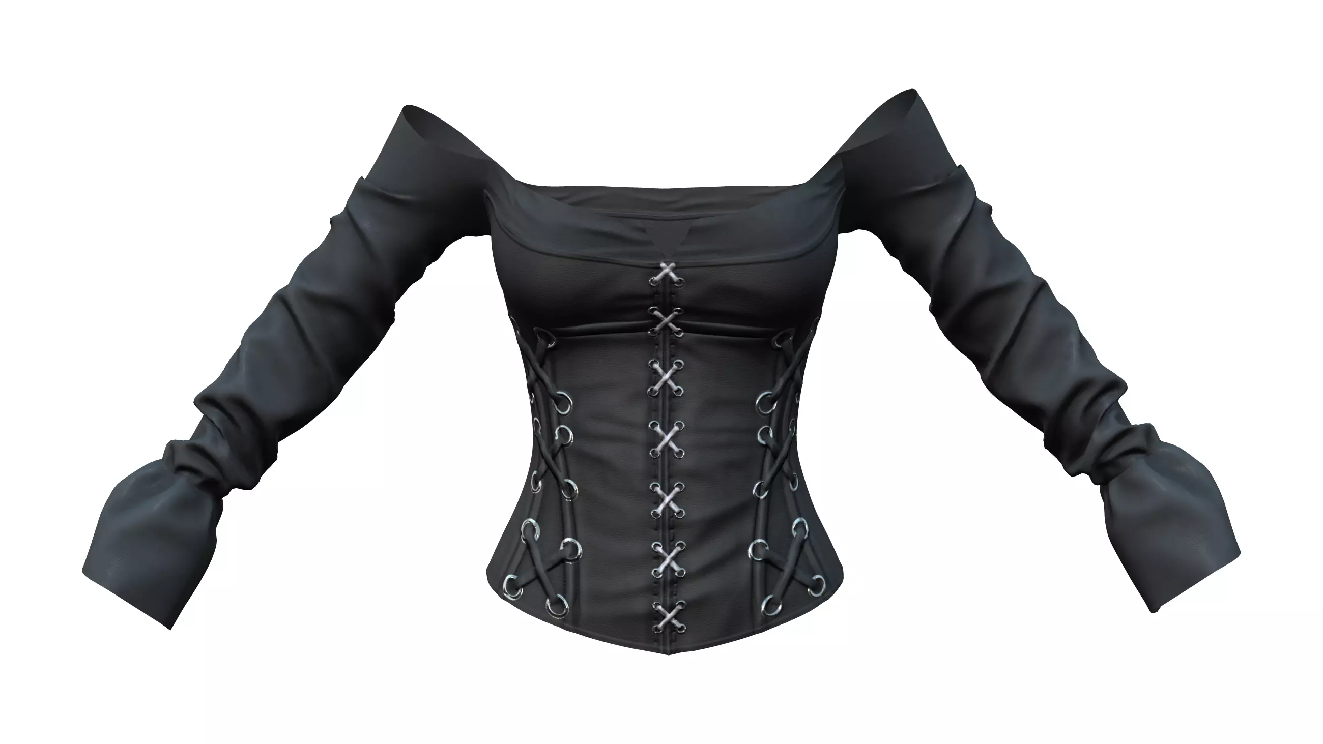Long Sleeves Off Shoulder Laces Up Dystopian Black Corset Top Low-poly 3D model