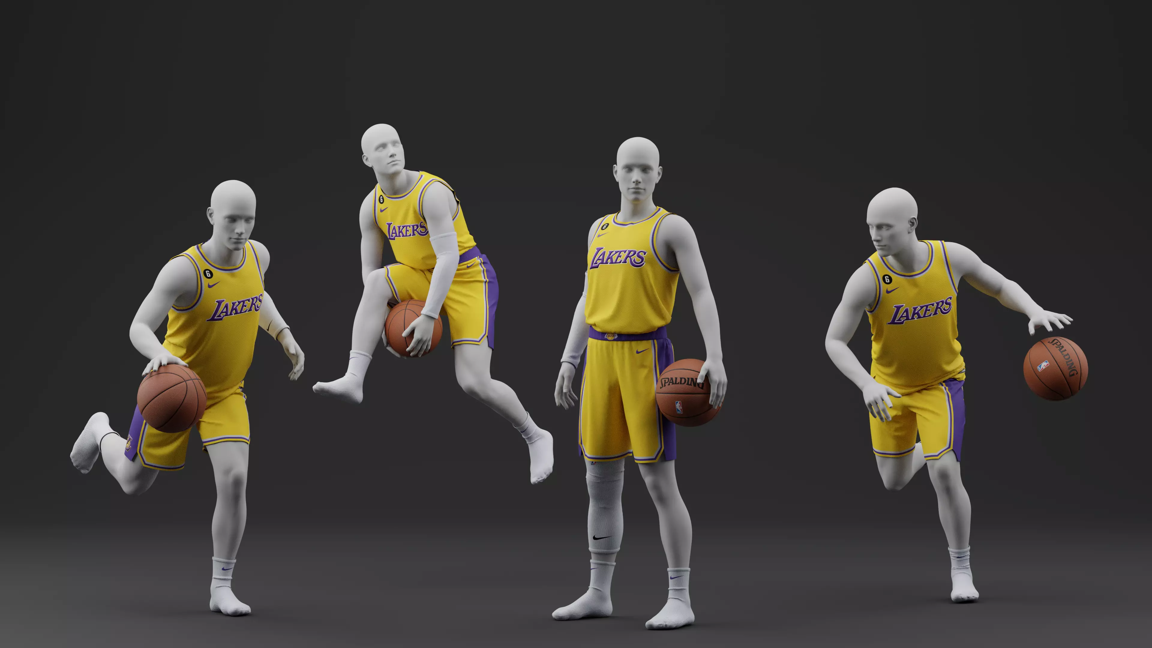 • 3d Model in Los Angeles Lakers Home Jersey Tucked OUT with 4 different poses and main A pose to be easily added on your character.