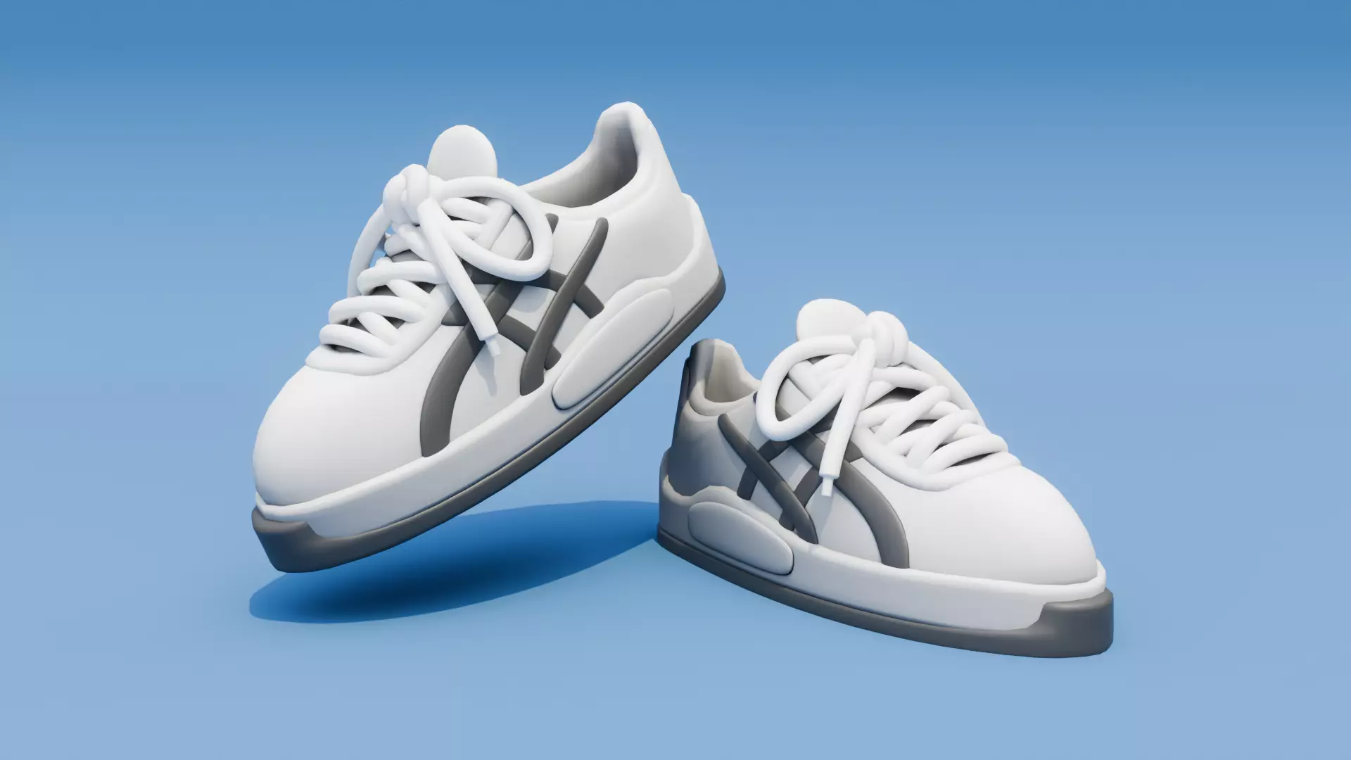 Stylized cartoon sport shoes perfect for games, animations, or renders. These lowpoly sneakers feature a clean, minimalist design with bold laces and soft color accents. Ideal for casual, sporty, or stylized 3D characters and scenes.