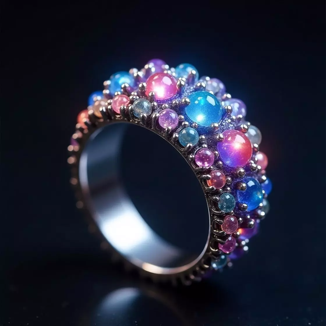 RingFantasyMagicGemstoneLuminousGlowingColorfulClusterChromaticJewelryBubbleOrnateEnchantedVibrantRPGPrintGiftBandOpulentCabochon