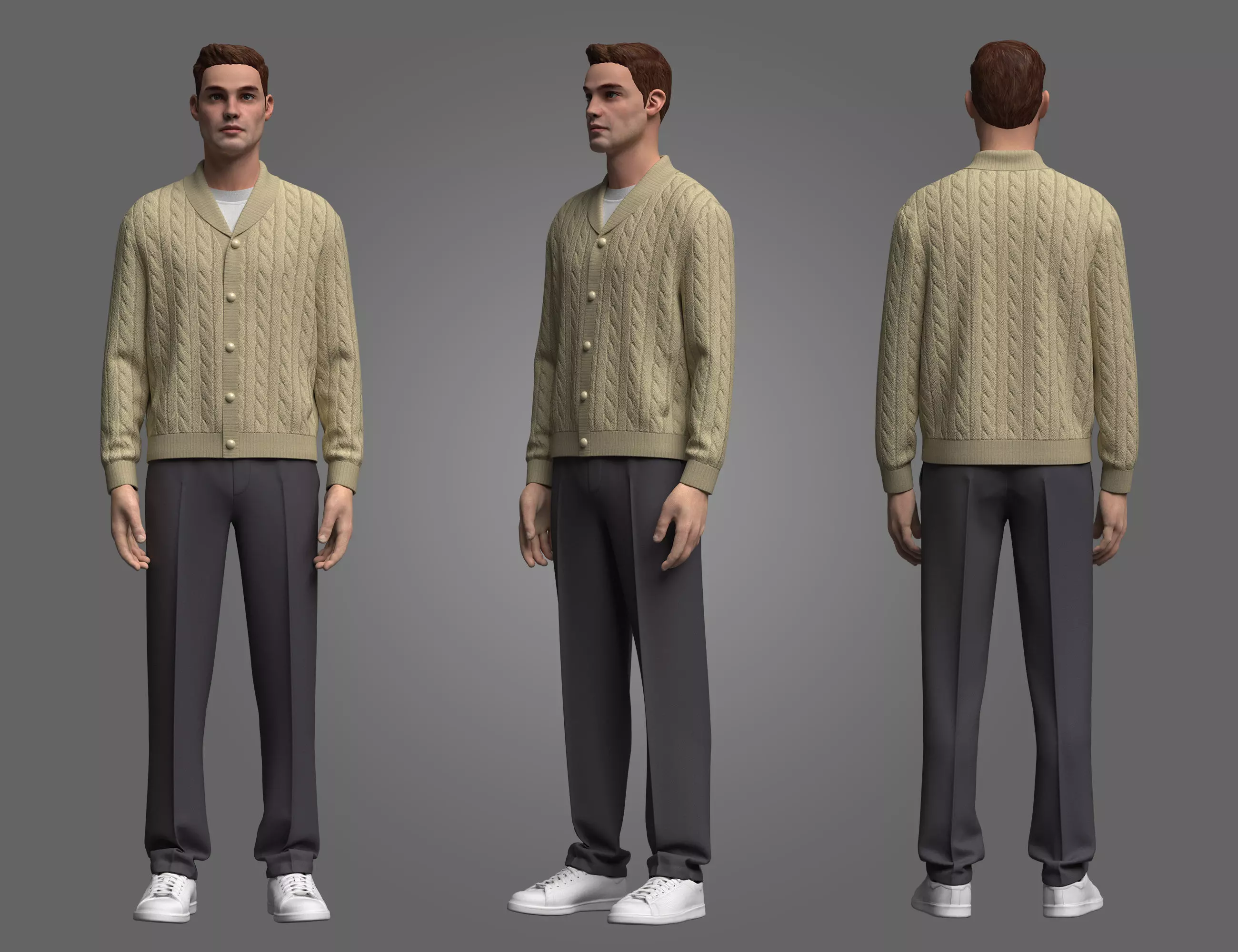 Male Cardigan T-shirts and Pant Outfit 3D model