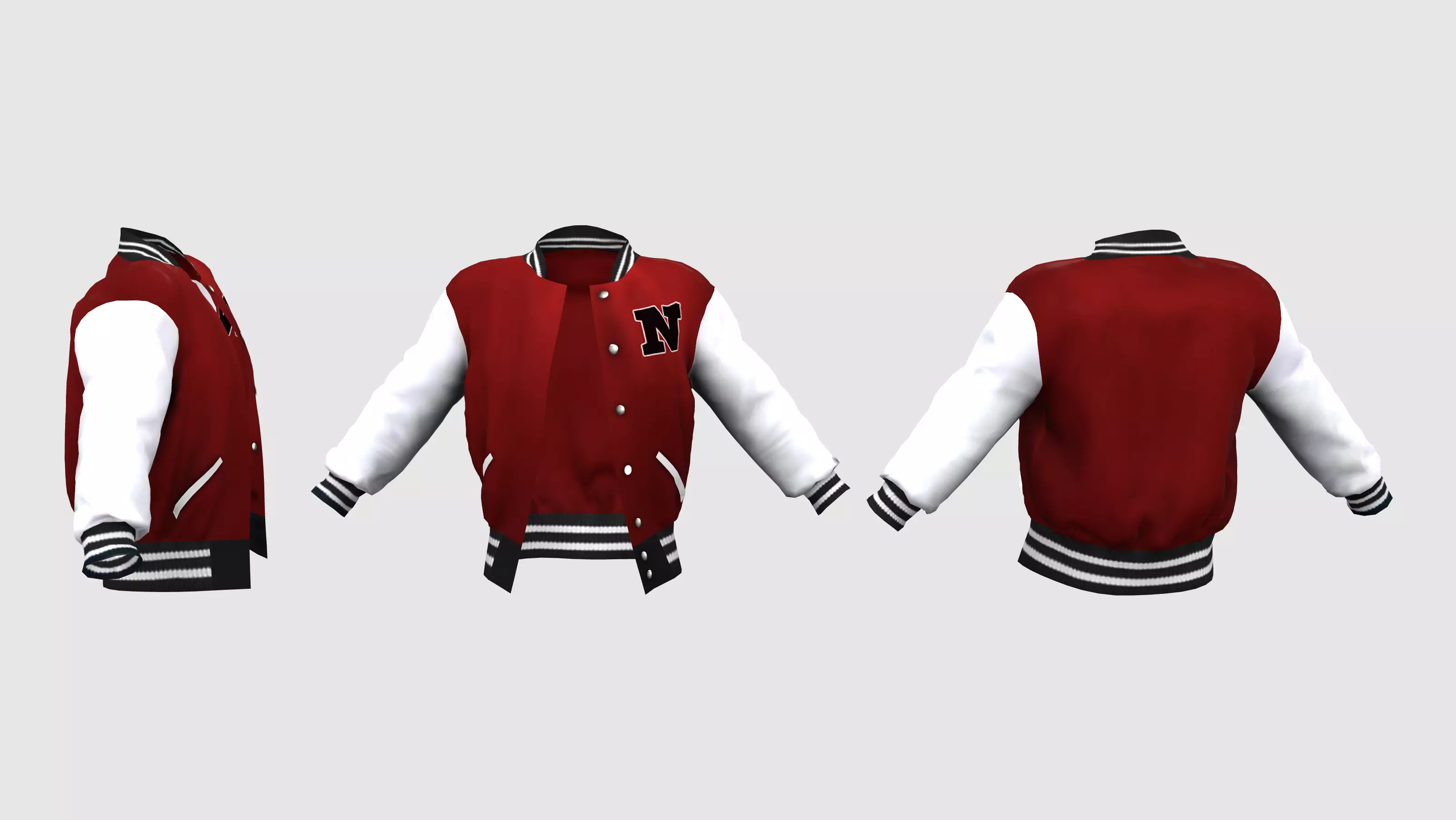 Male Letterman Jacket Unbuttoned Low-poly 3D model