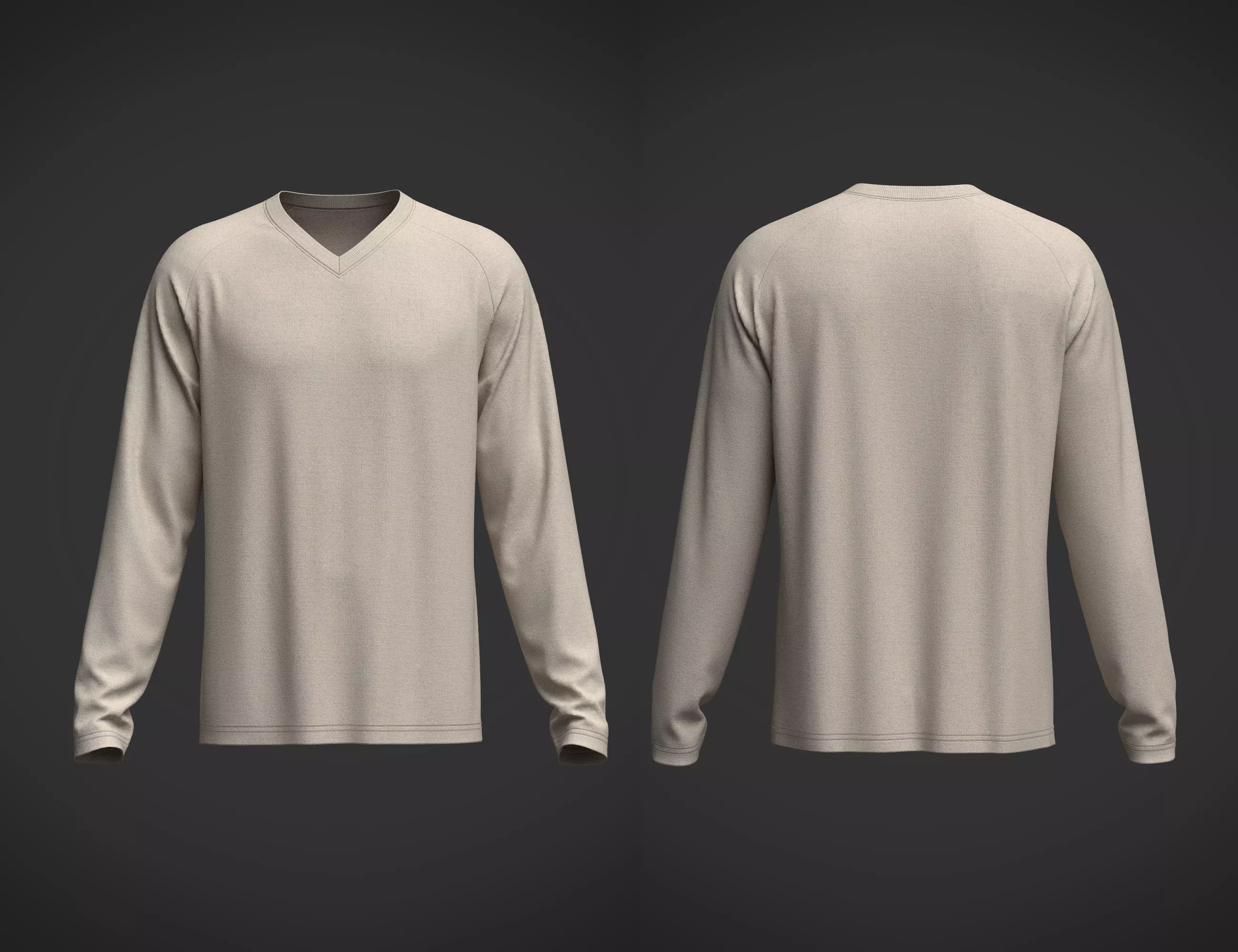 Male V-Neck Long Sleeve Tshirt 3D model