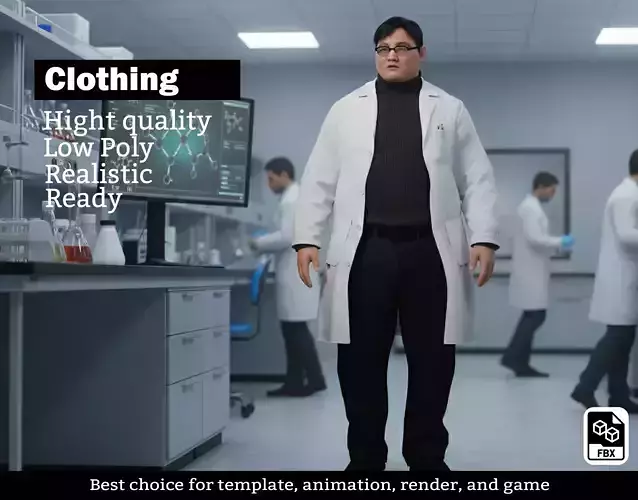 Professional Detail: Includes accessories like glasses and pocket pens to add character realism.High-Quality Textures: Realistic fabric simulation on the coat and knit texture on the turtleneck.Game Ready: Optimized topology suitable for real-time engines like Unity and Unreal.
