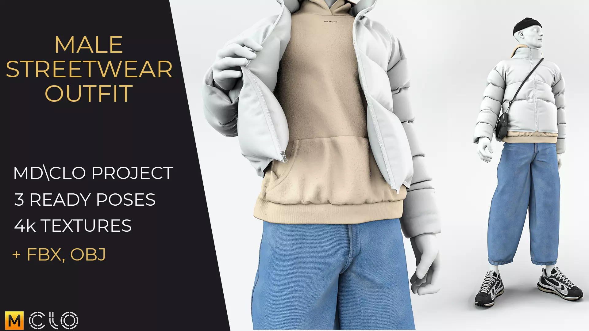Male streetwear outfit - Clo3d and MD project - OBJ FBX 3D model