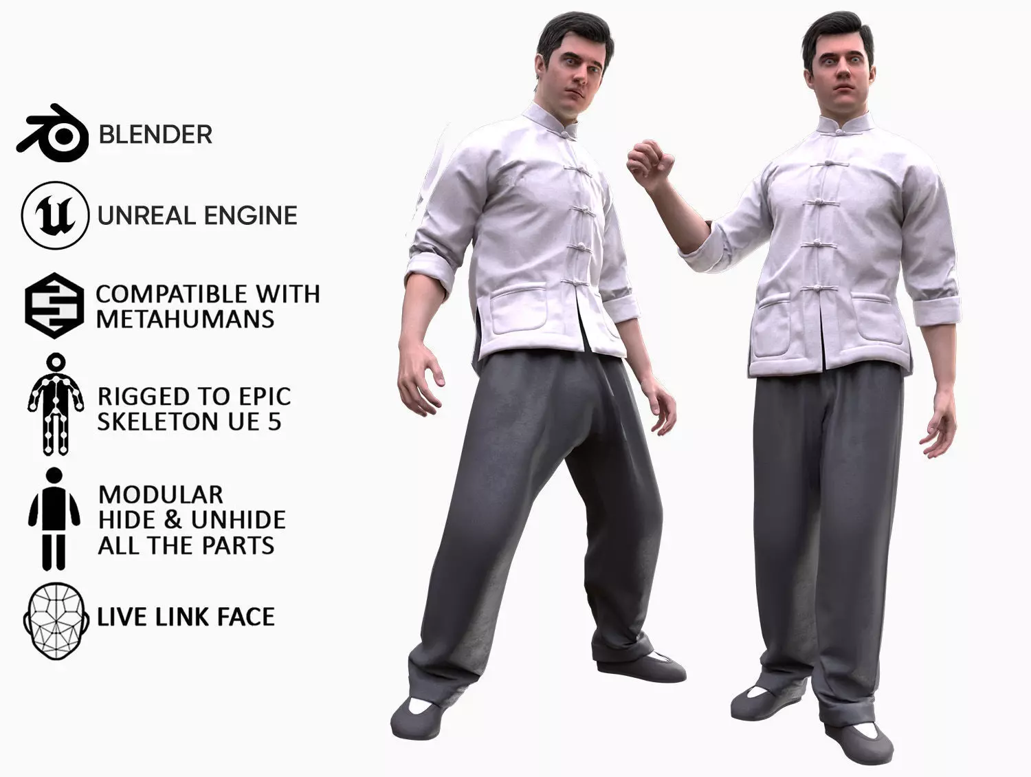 Man - Martial Uniform 6 - Modular - Rigged Low-poly 3D model