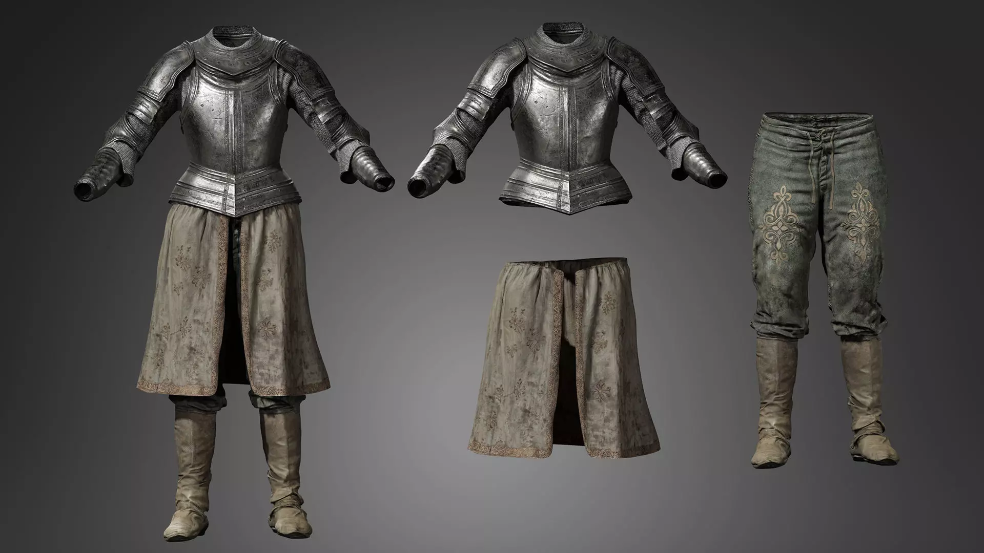 This set features a high-tier noble warrior outfit, including a polished steel breastplate with intricate fluting, a chainmail hauberk, articulated plate arm guards, and embroidered fabric elements. These assets are ideal for knights of high standing, royal guards, RPG environments, or character dressing scenes. The clothing features realistic textures of tempered steel, fine chainmail links, and luxury textiles with gold-threaded embroidery to provide an elegant yet formidable appearance. Perfect for adding elite character equipment to NPCs and protagonists in game scenes or cinematics.