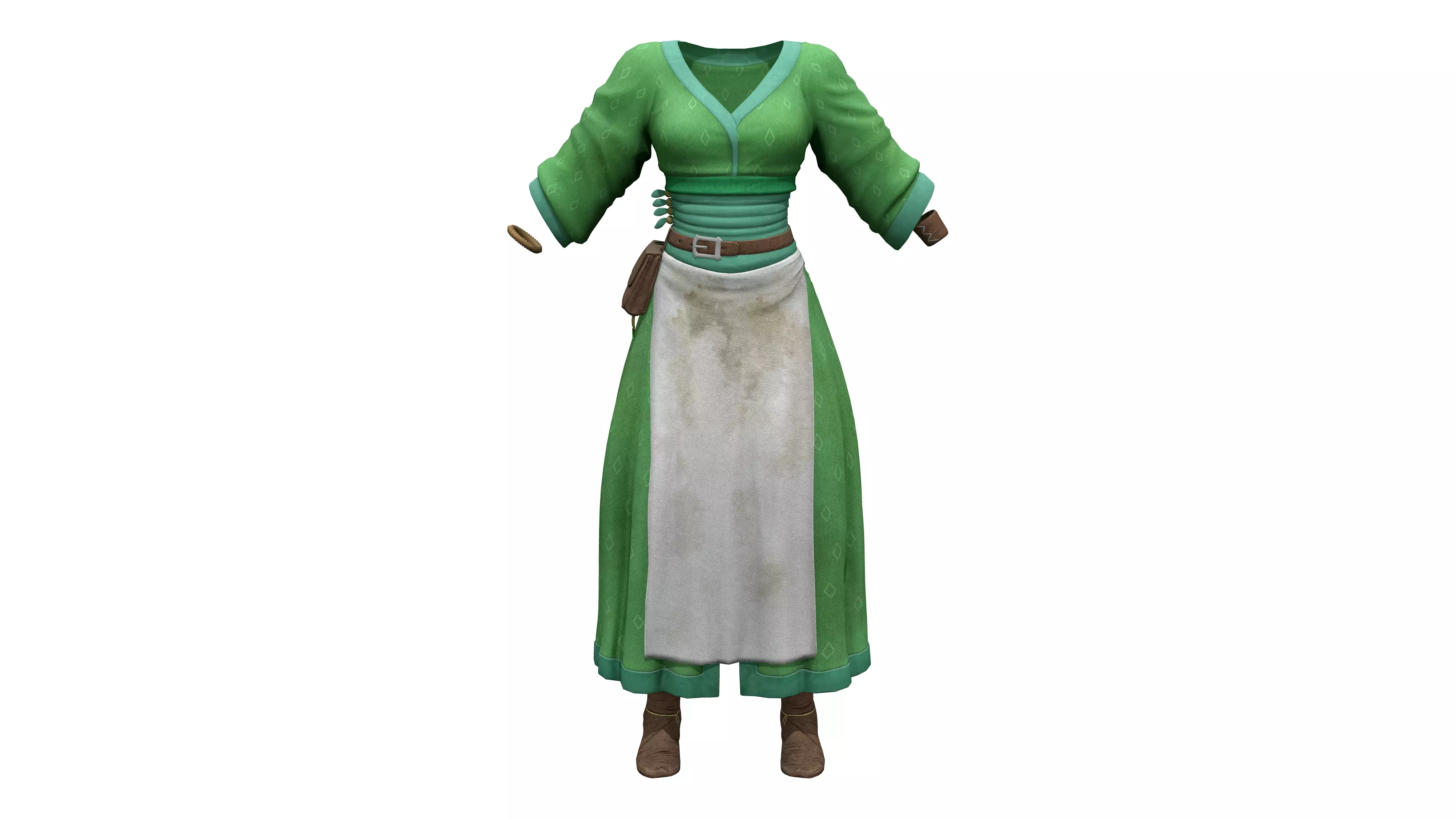 Medieval Green Tavern Waitress Outfit Low-poly 3D model