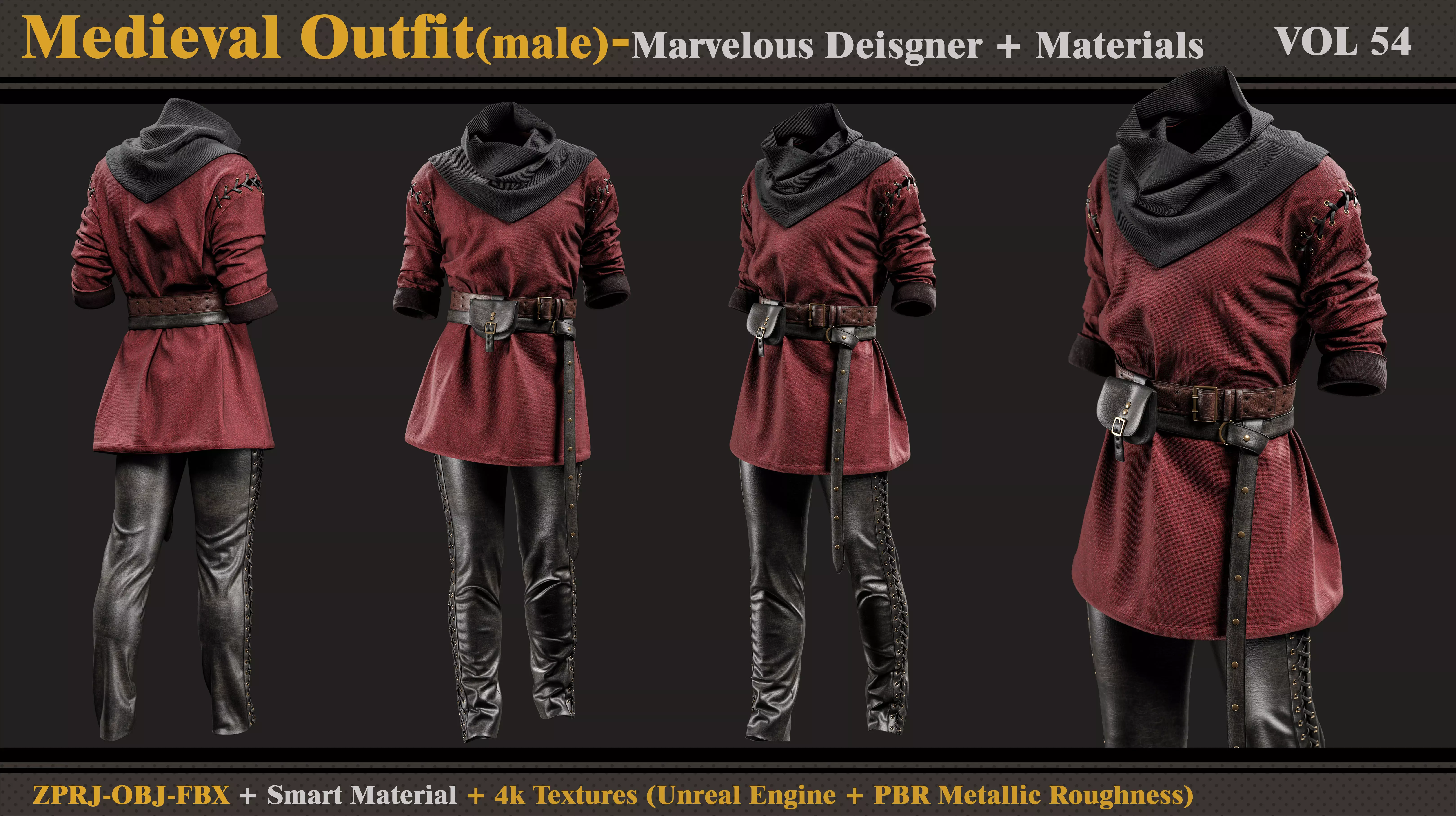 Medieval Outfit- MD-Clo3d-Smart Material-Textures-OBJ-FBX 3D model