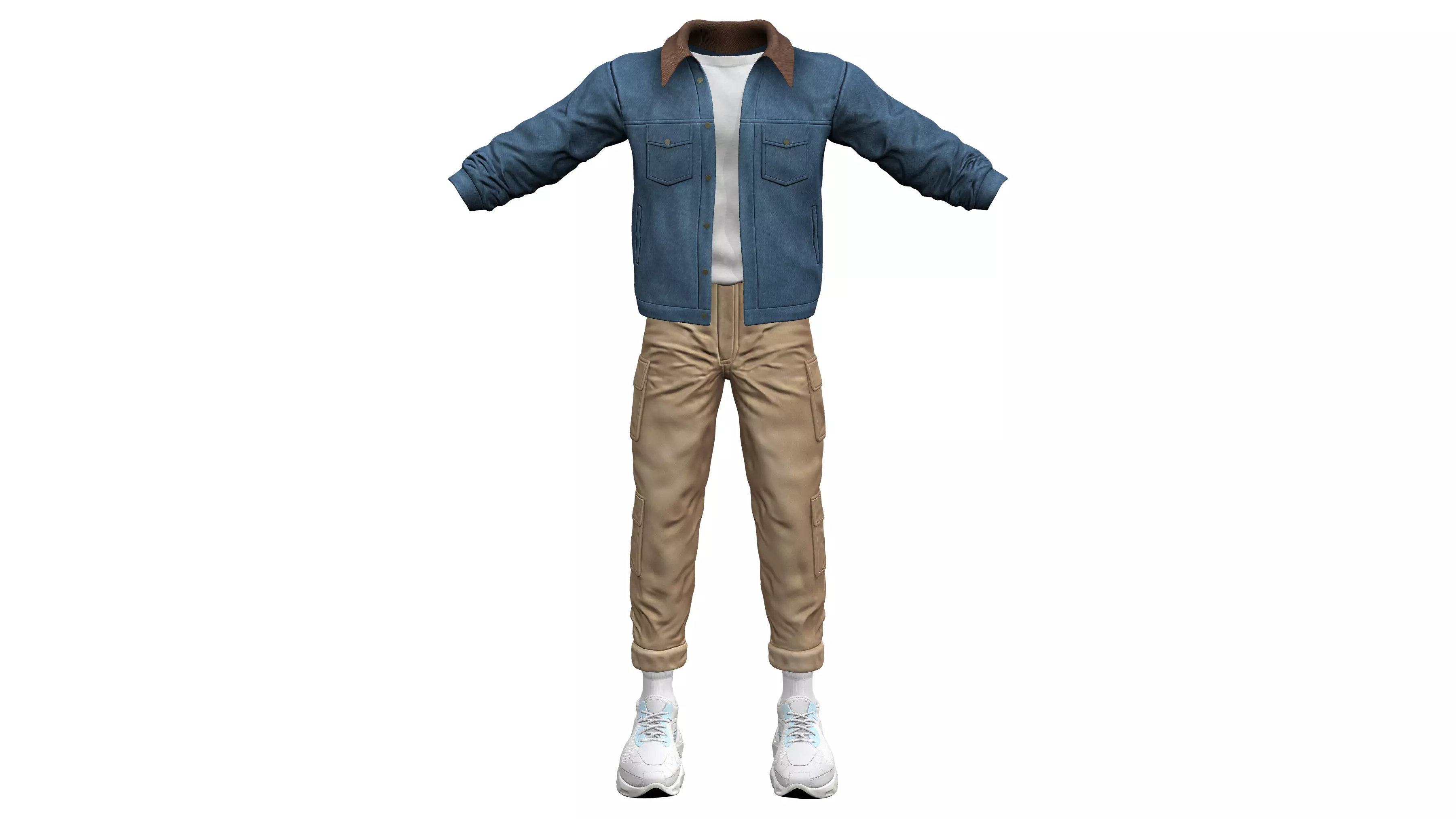 Men Cargo Pants Denim Jacket Tshirt Sports Shoes Outfit Low-poly 3D model