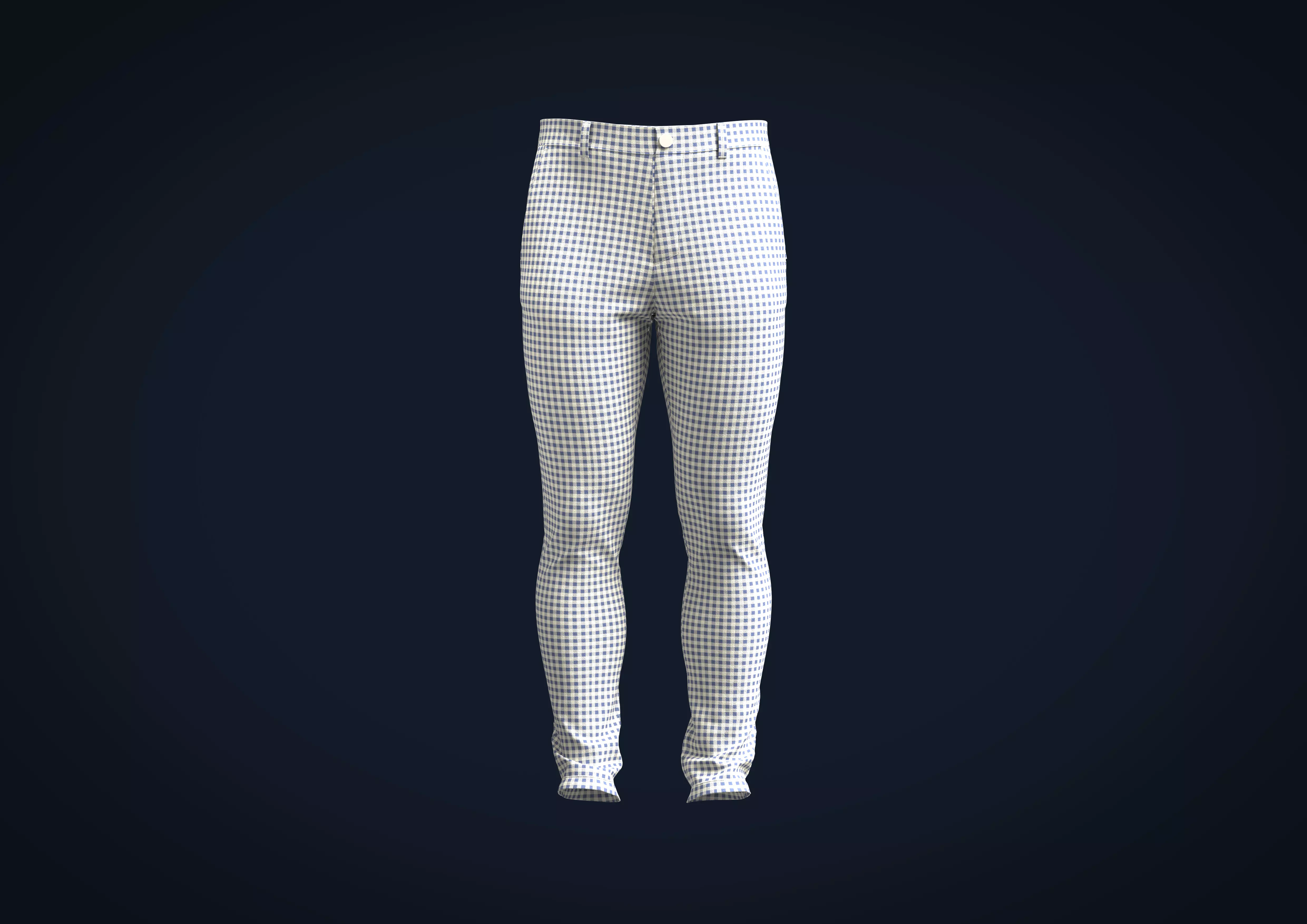 Mens checkered plaid Indigo blue and Ivory white color Mens chino Tailor pant with slant pocket fashion streetwear made in CLO3D/Marvelous Designer.