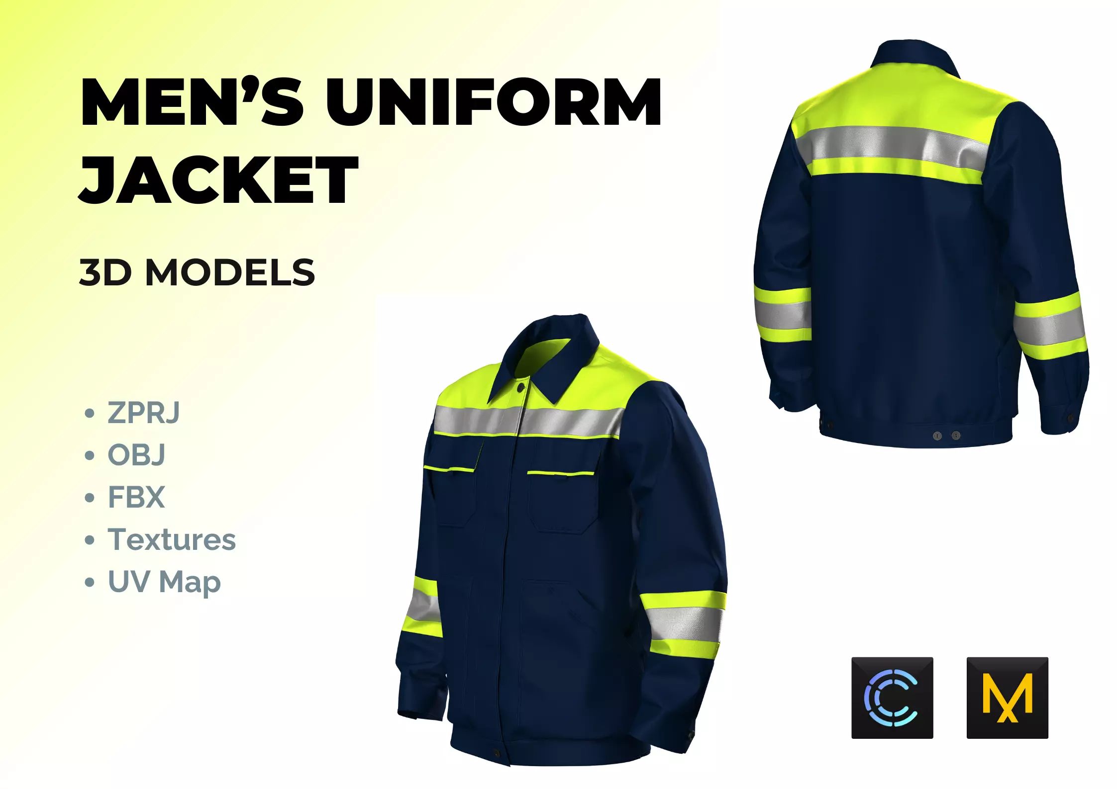 Mens Uniform Jacket with pockets and reflective tapes. Created in CLO3D ver.7.2. High detailing of products.