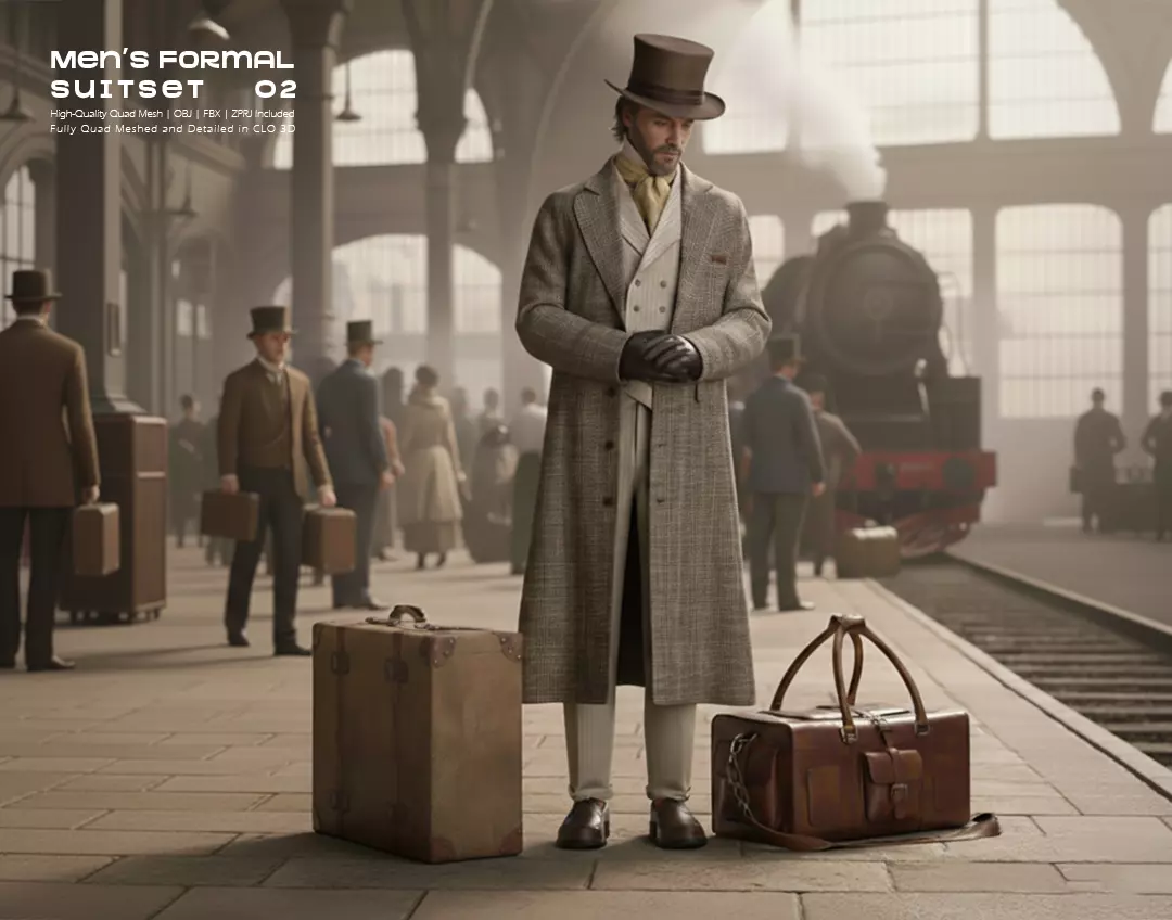 ** Victorian Formal Elegance**Where classic refinement meets cinematic presence.A men’s formal suitset inspired by authentic Victorian aesthetics — blending precise tailoring, structured design, and a subtle narrative touch.Ideal for realistic, stylized, or cinematic characters — presented in A-Pose for easy rigging and adaptation.