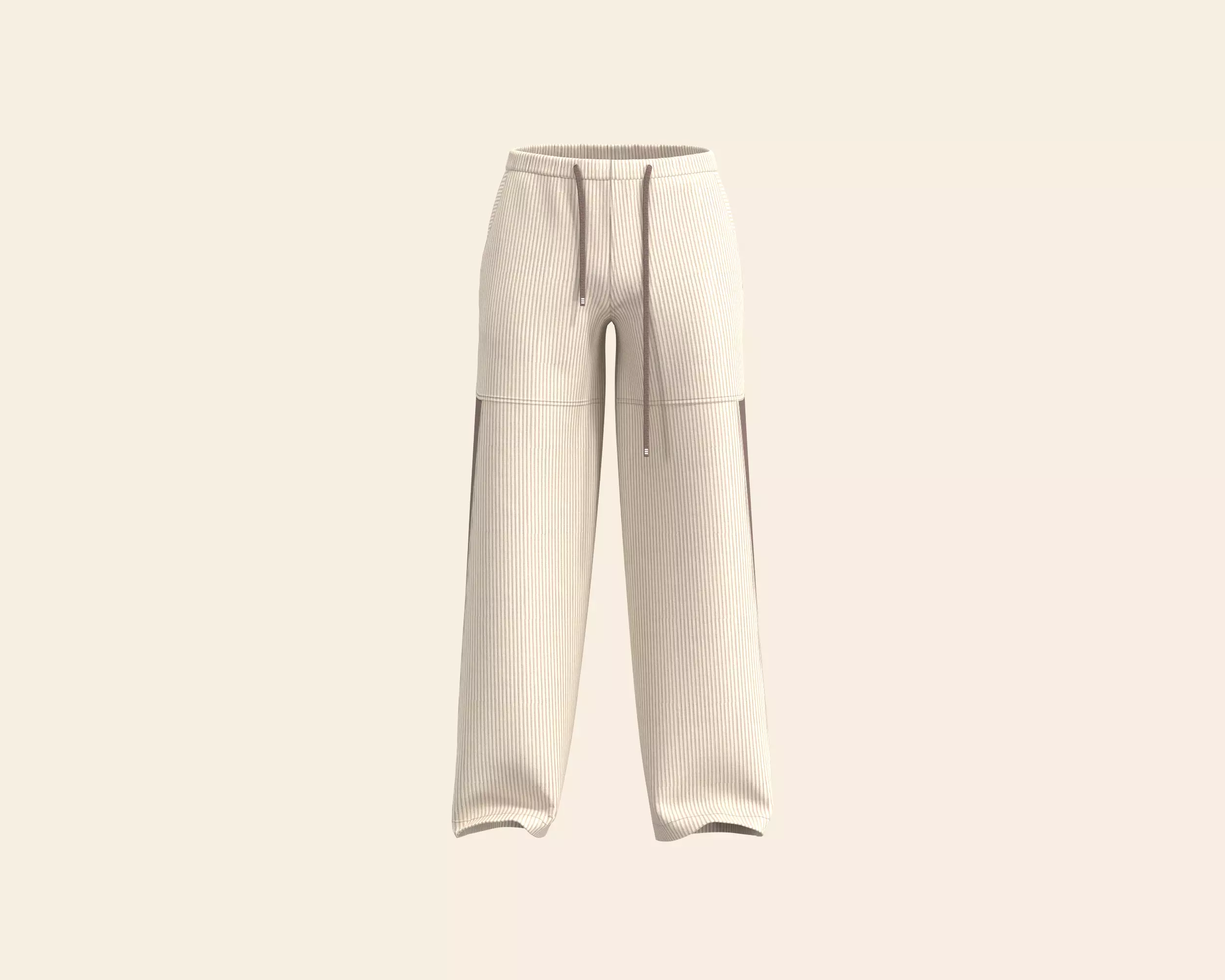 Mens long pant with cut and sew panel and color block fabric made in CLO3D/Marvelous Designer.