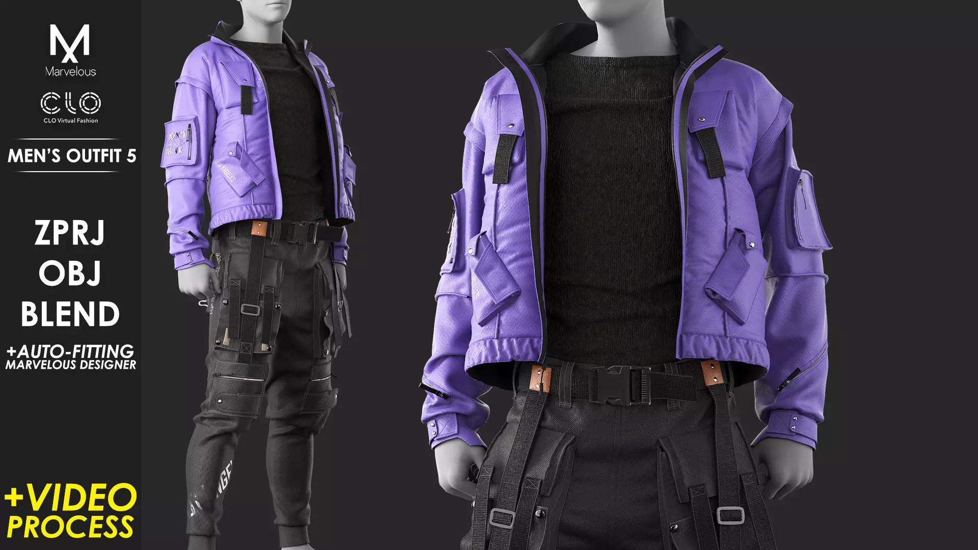 Mens Outfit 5 - Marvelous Designer with Video Process 3D model