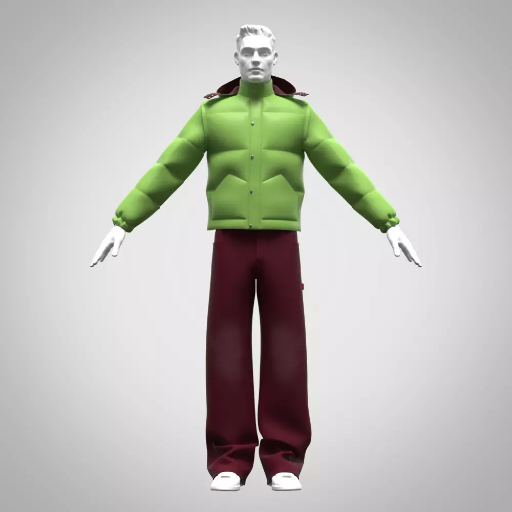 This Men’s Padded Jacket and Baggy Pant 3D Clothing Set was created by fashion designers, for fashion designers. Every fold, seam, and stitch was constructed in CLO Standalone using authentic garment patterns — so it moves, bends, and fits like real apparel. Unlike most generic 3D clothing, this set is low-poly optimized for smooth animation, rigged for character fitting, and layered with realistic padded and textured materials that add dimension without heavy file sizes.It’s not just a 3D model — it’s a ready-to-use professional base for your next project, whether that’s a digital fashion show, metaverse avatar, e-commerce render, or design portfolio.Key BenefitsReal-World Accuracy – Constructed from professional sewing patterns; perfect for design validation.Low-Poly Optimization – Renders fast in Unreal, Unity, Blender, or CLO 3D with minimal lag.Rigged for Motion – Ready for animation and character integration.Hyper-Realistic Textures – Includes padded fabric, seam detailing, and realistic lighting response.Cross-Platform Flexibility – Works seamlessly in CLO 3D, Marvelous Designer, Blender, Maya, Unreal Engine.Portfolio-Ready Design – Ideal for students and professionals who need a finished, high-impact presentation piece.Included GarmentsMen’s Padded JacketMen’s Baggy Pant