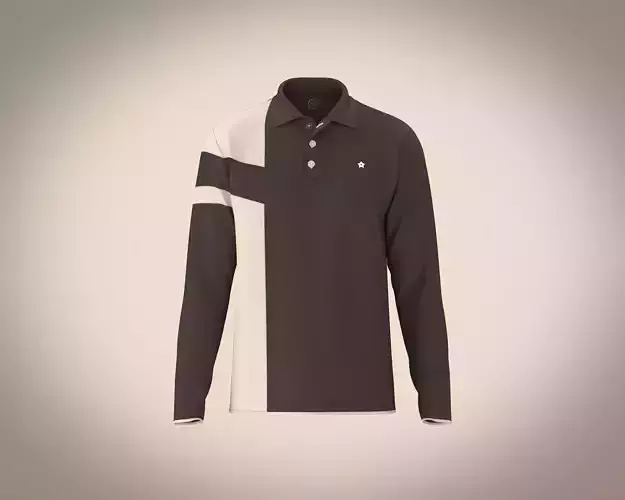 Mens polo shirt with long sleeve and cut and sew detailing 3D model