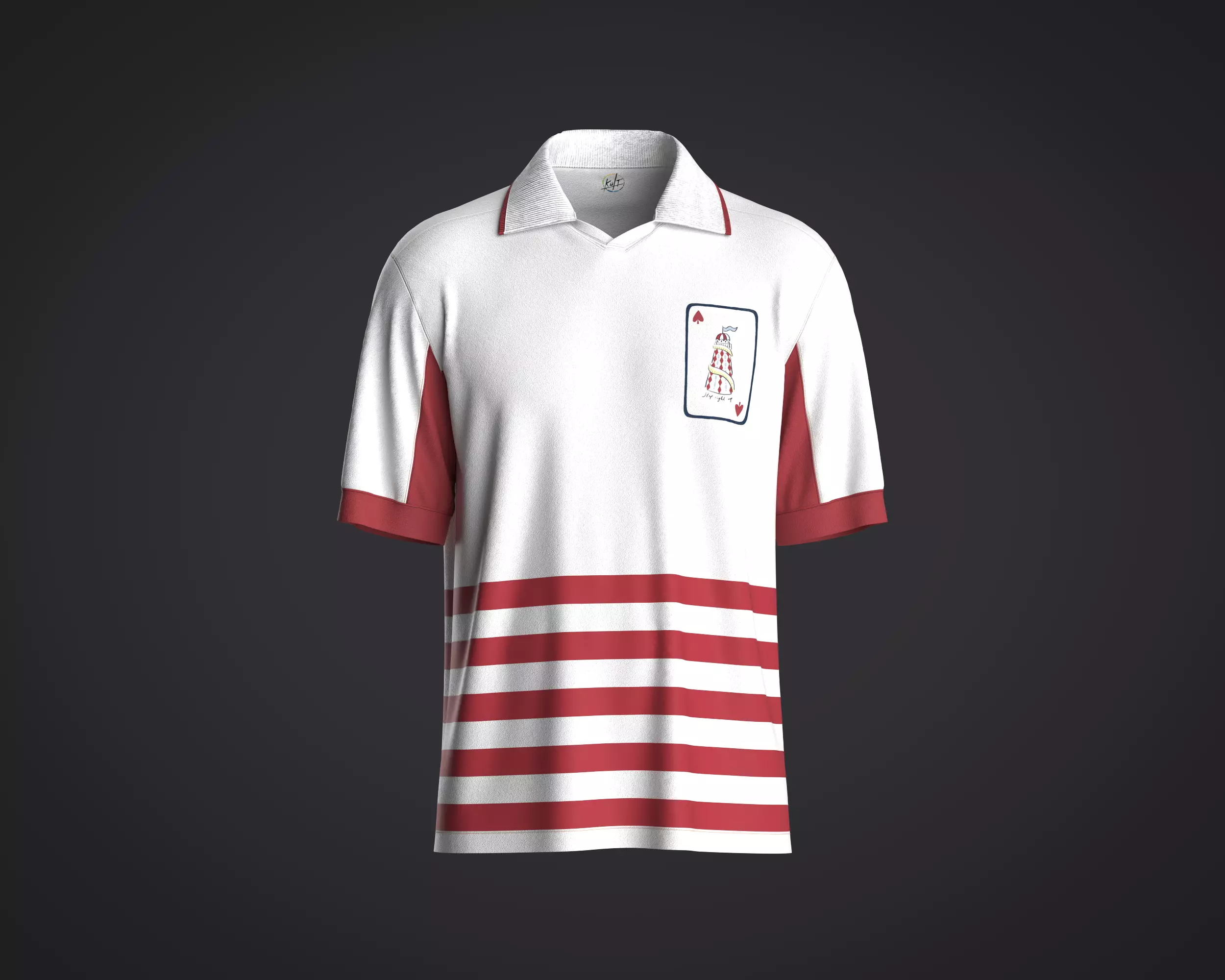Mens Polo shirt with strip and chest print color block made in CLO3D/Marvelous Designer.