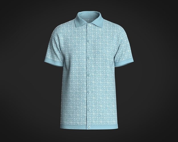 Mens Printed-7 Buttons Polo Shirt