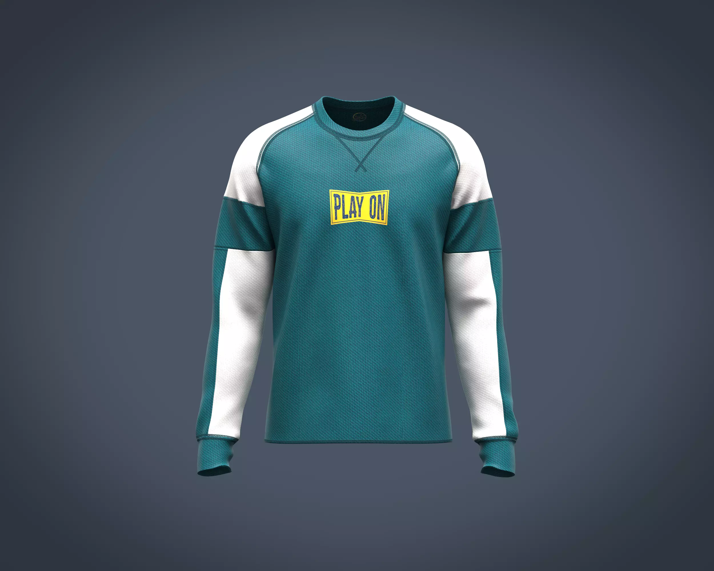 Mens raglan cut and sew sweatshirt with color block and print made in CLO3D/Marvelous Designer.