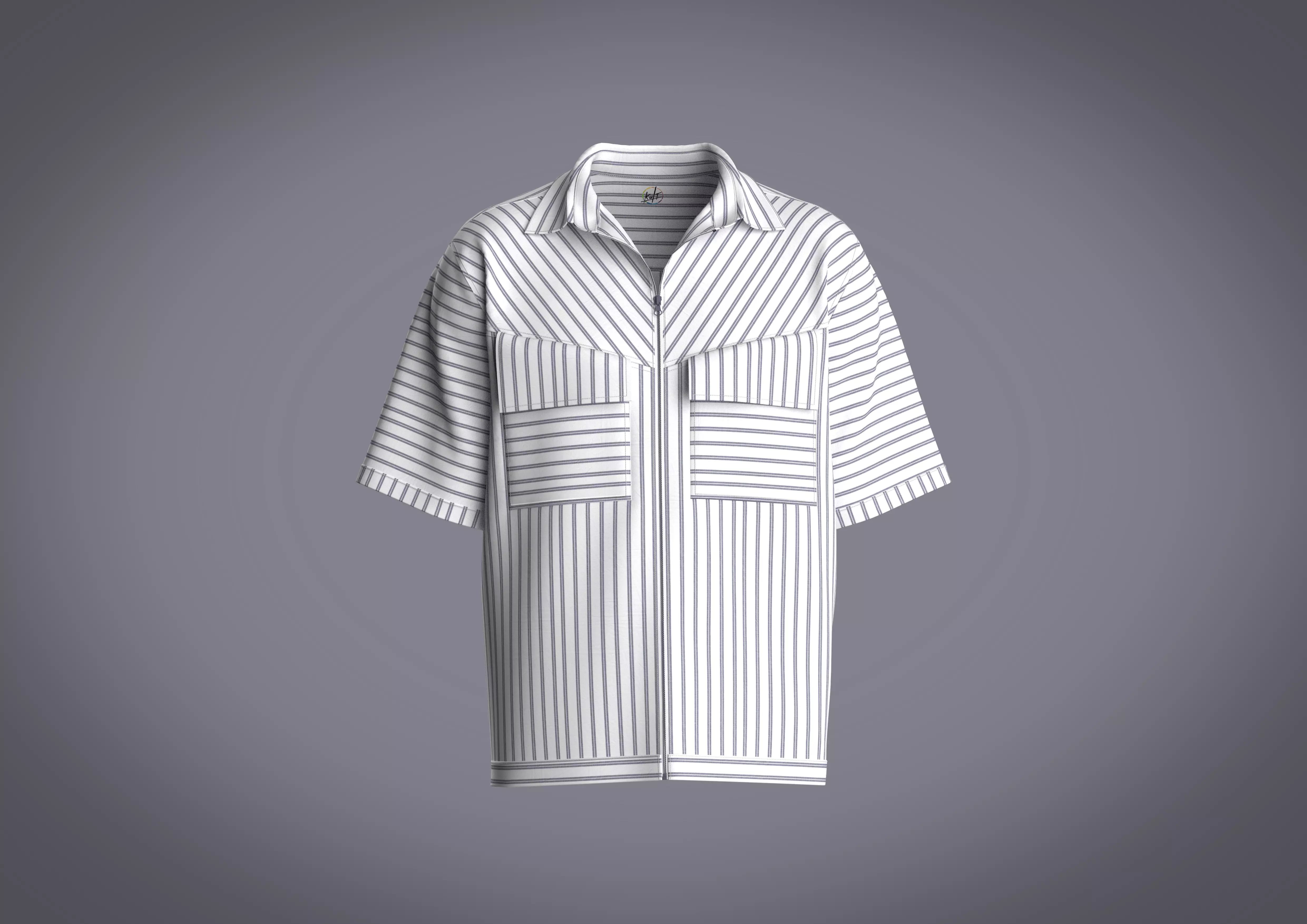 Mens shirt with flap pocket and strip made in CLO3D/Marvelous Designer.