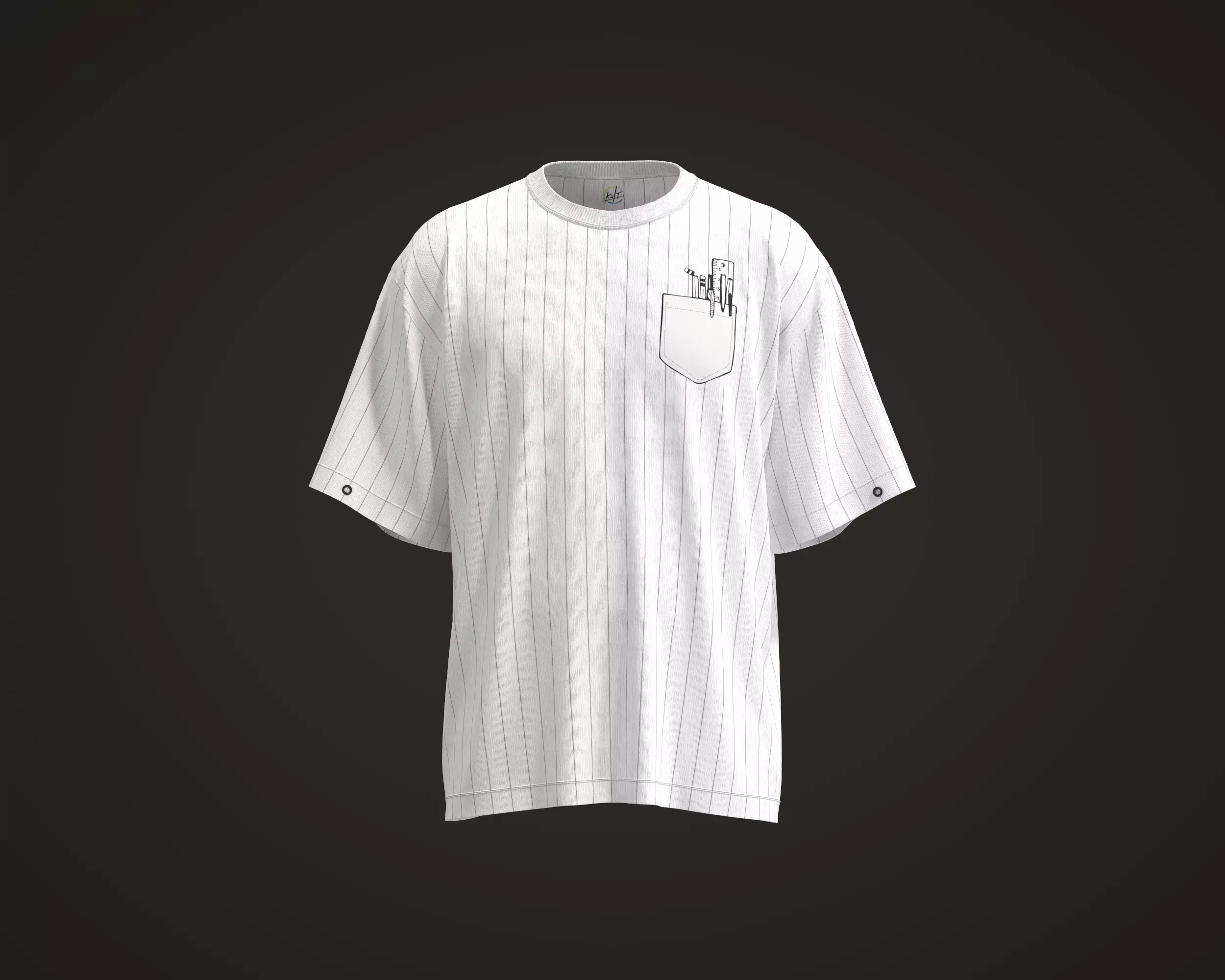 Mens T-shirt with strip and side chest print made in CLO3D/Marvelous Designer.