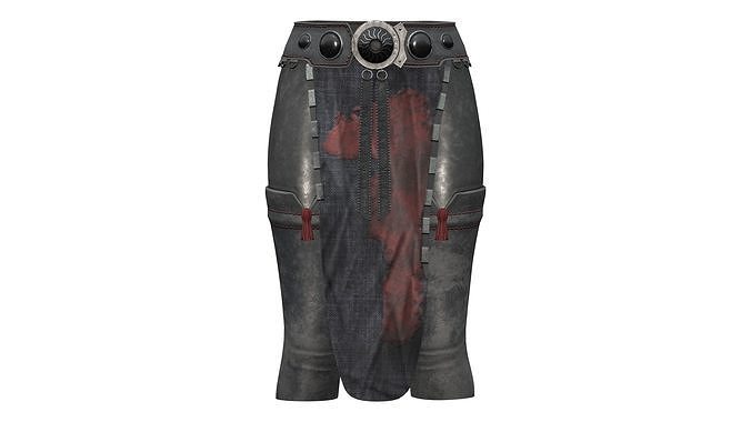 Metal Belt Loin Cloth Decorated Black Leather Tight Pants Low-poly 3D model