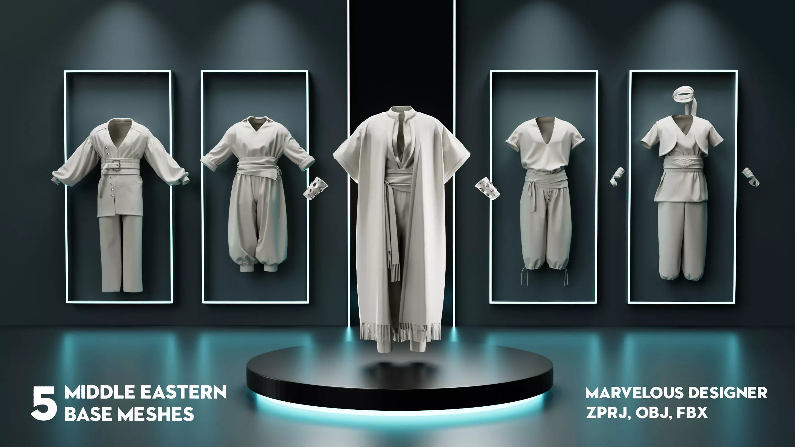 Middle Eastern Men Outfit base meshes Low-poly 3D model