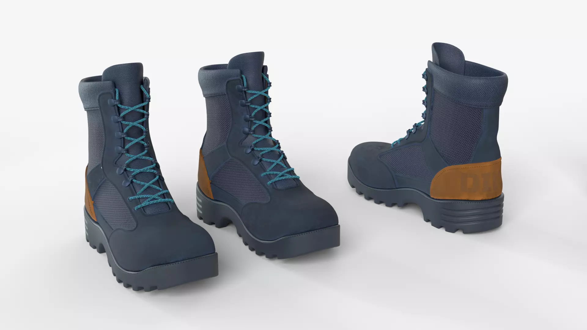 • Military-Style Boots in Blue Color in FBX format, including textures.