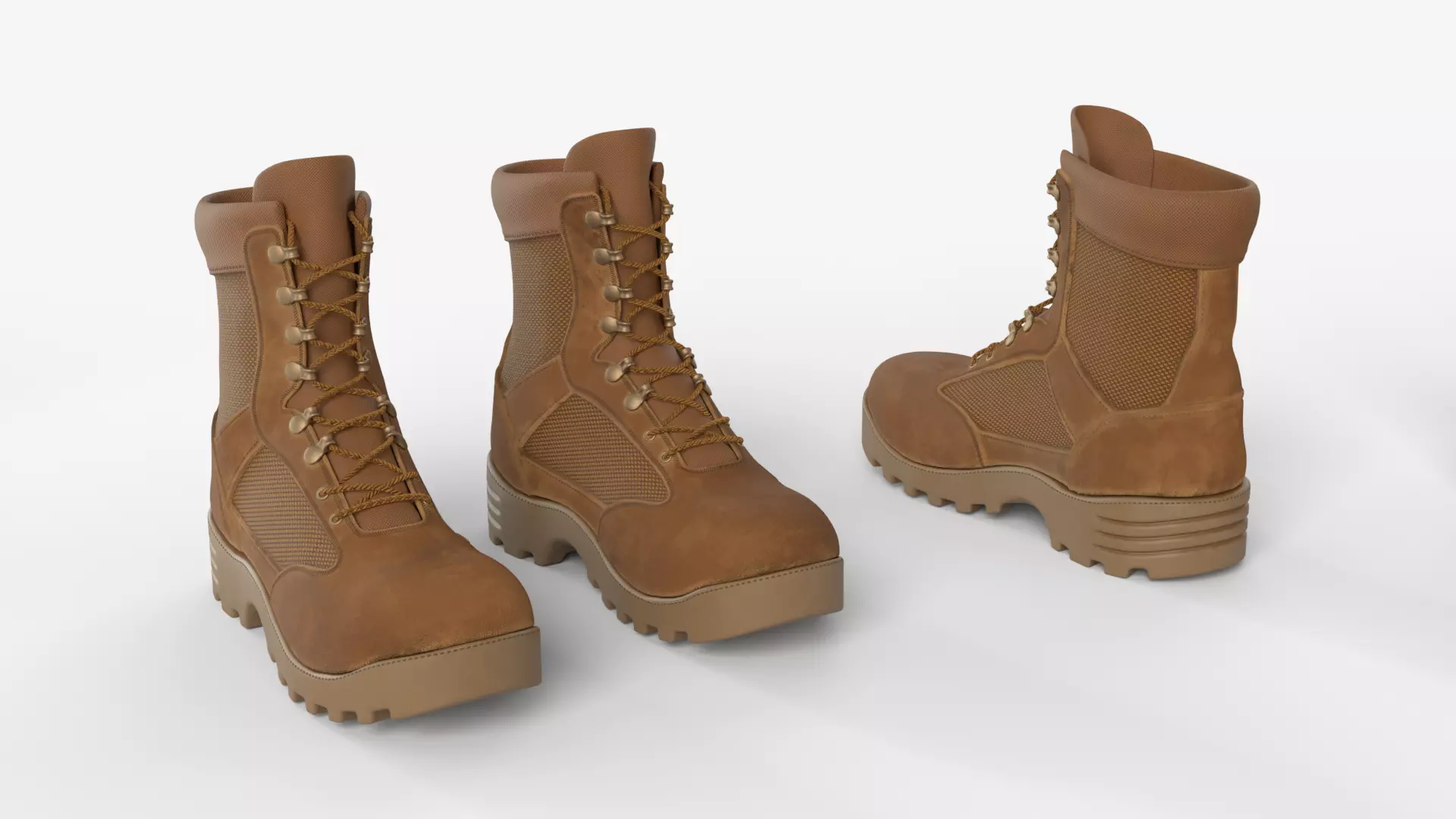 Military-Style Boots in Brown Color features clean geometry (no N-gons) ,unwrapped UV maps,high-resolution 2K and 4K PBR textures.