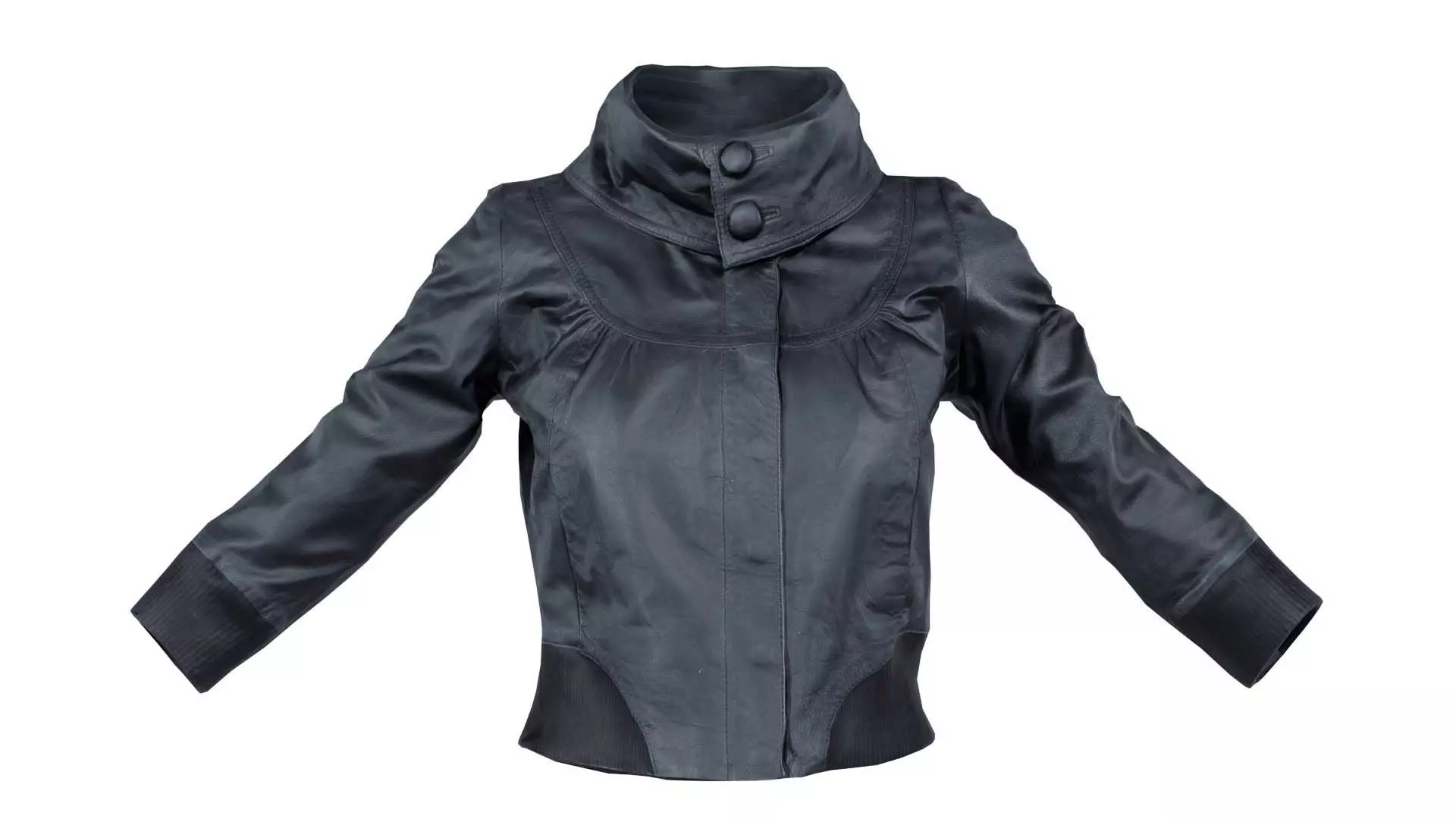 3D scanned model featuring a black jacket with a collar and buttons. This model, mini black leather jacket closed, has been created using photogrammetry from a real world object.The raw scan data has been cleaned, retopologized and UV-unwrapped using Zbrush. The result is a low poly mesh with baked maps. The .obj and .mtl are configured so that maps will load automatically in the shader (tested in Blender). In addition, a Blender scene is provided with the model and shader already set up for rendering and export. Detailed information below:
