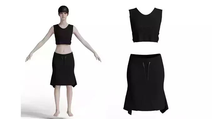 Minimalist Sleeveless Crop Top and Asymmetrical Skirt Set 3D model