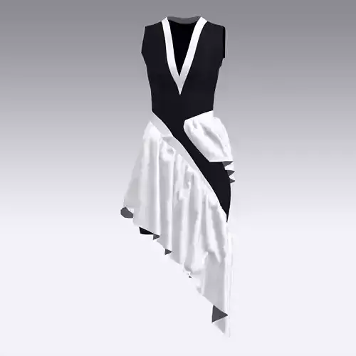 model drape black and white color block modern dress Low-poly 3D model