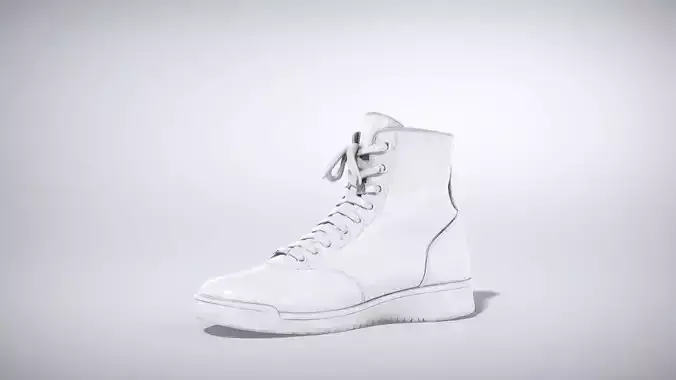 This boxing shoe features a tall, lightweight lace-up upper for optimal ankle support, crafted from durable synthetic materials in a sleek monochrome finish. The thin, flexible sole enhances agility and footwork in the ring. Each model has 3 levels of detail with QUAD polygons: