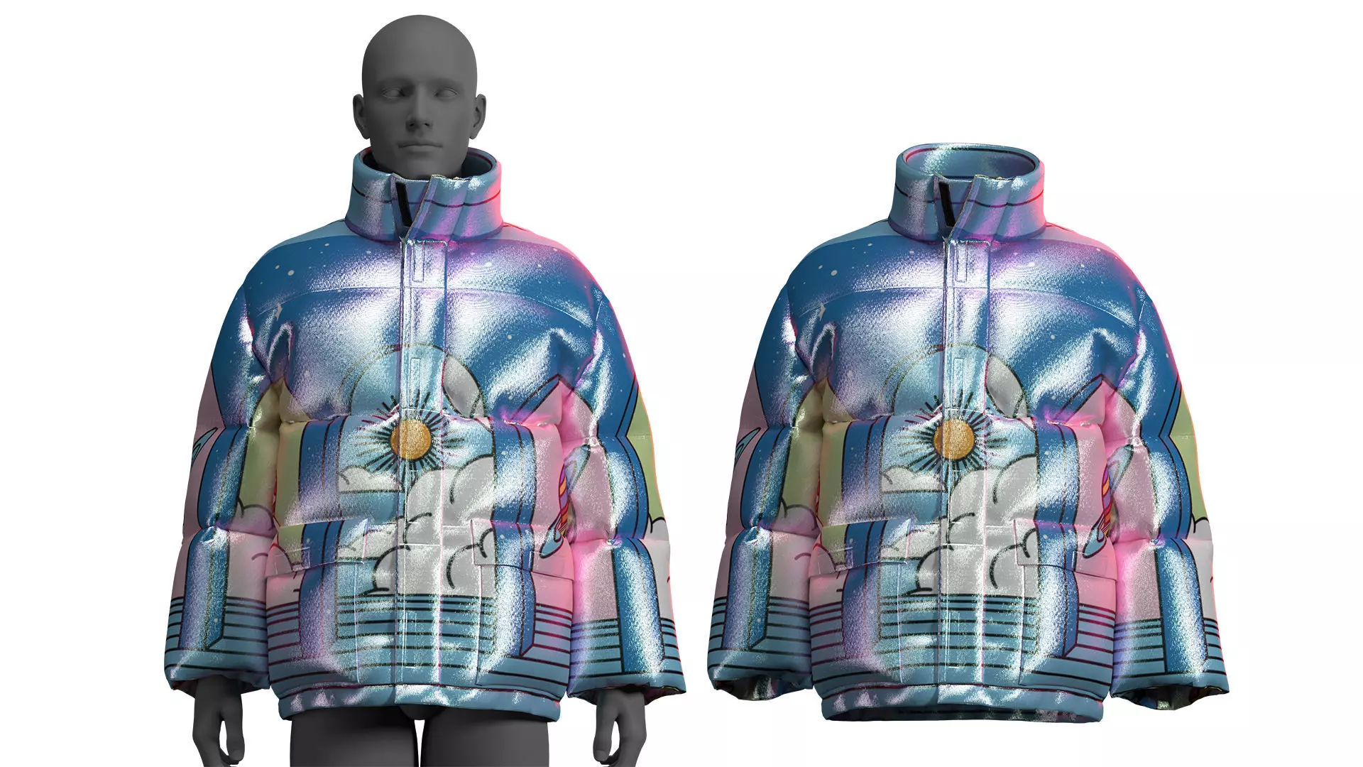Multicolour Puffer Jacket Fitted to Gen8 Body Mesh 3D model