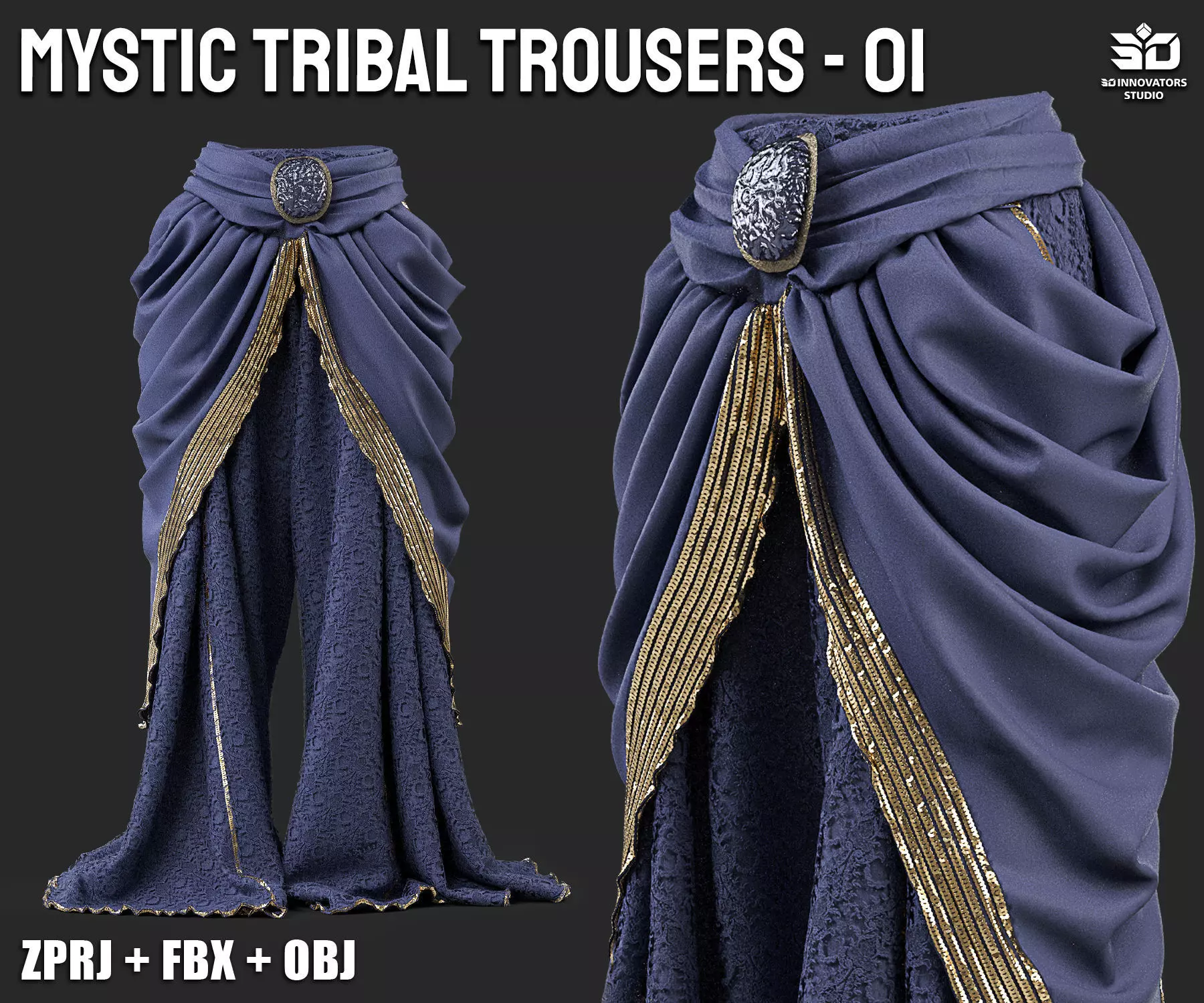 Elevate your fantasy and tribal-inspired characters with Mystic Tribal Trousers 01, a highly detailed and ornamental 3D garment designed for stylized environments, game design, and virtual fashion collections.