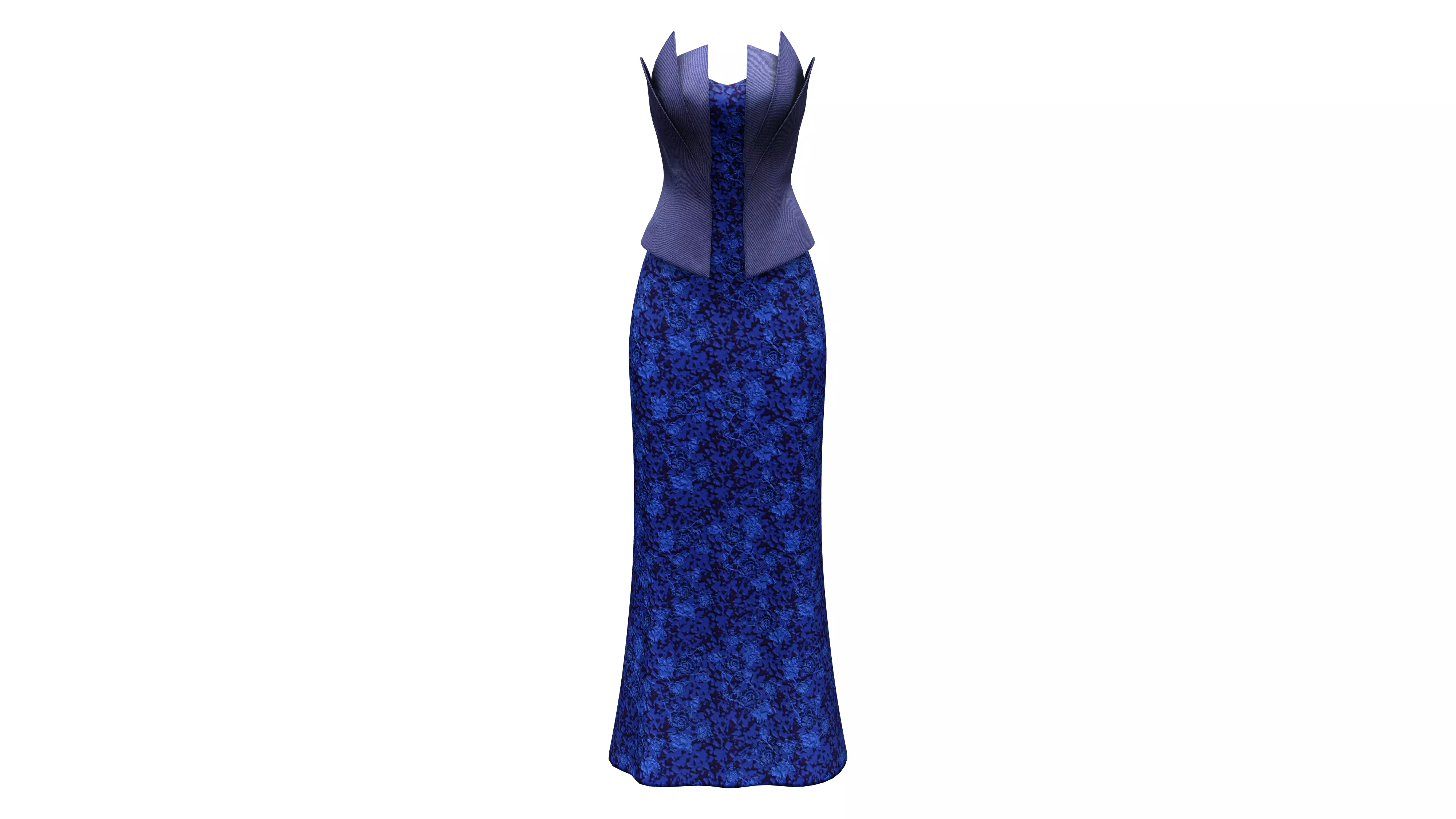 Navy Layered Neck Line Peplum Waistline Trumpet Skirt Gown Dress Low-poly 3D model