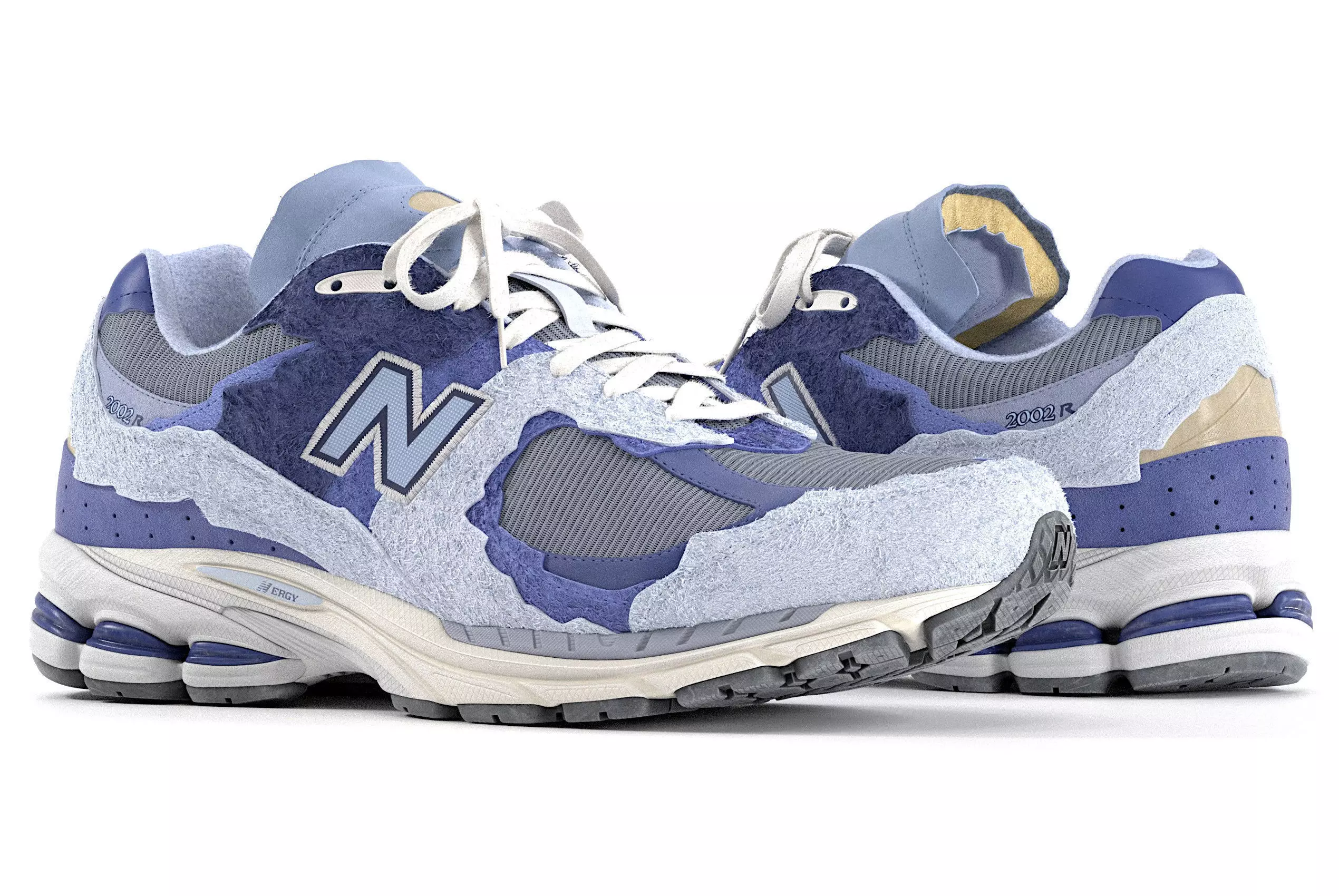 Pushing the quality of materials and resolution of the mesh, this shoe hits a level of realism that does justice to the original design by New Balance. The suede and fabric mesh surfaces were the main focus, built on top of a sharp sole that blends hard plastic and soft foam. Details of the shoe remain physical, from the hairy suede to the stitching of logos, This approach allows for a greater depth in renders and helps to bring these details to life.