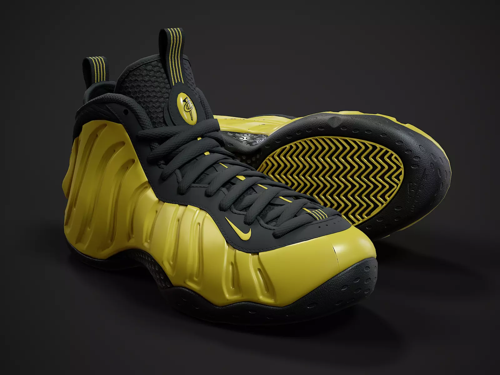Medium poly PBR textured model of Nike Air Foamposite-1 sneaker (optic-yellow colorway). Well textured and ready for Virtual Reality (VR), Augmented Reality (AR), games and other real-time apps for handheld devices.