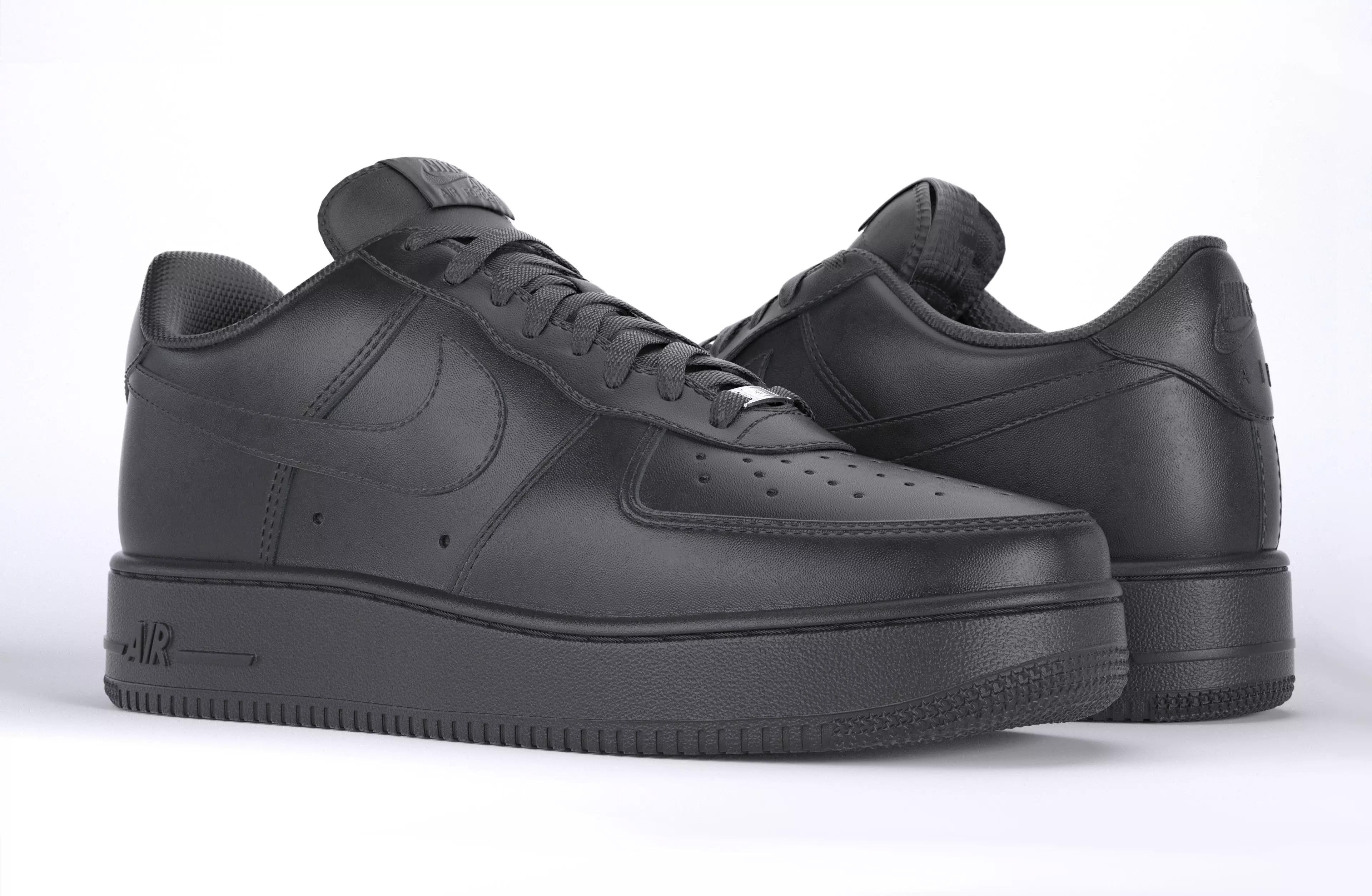 Nike Air Force 1 in Black. The most popular sneaker on the planet, and a staple in many wadrobes. Made with a high attention to detail, this rendition of the shoe aims provide the highest fidelity possible.