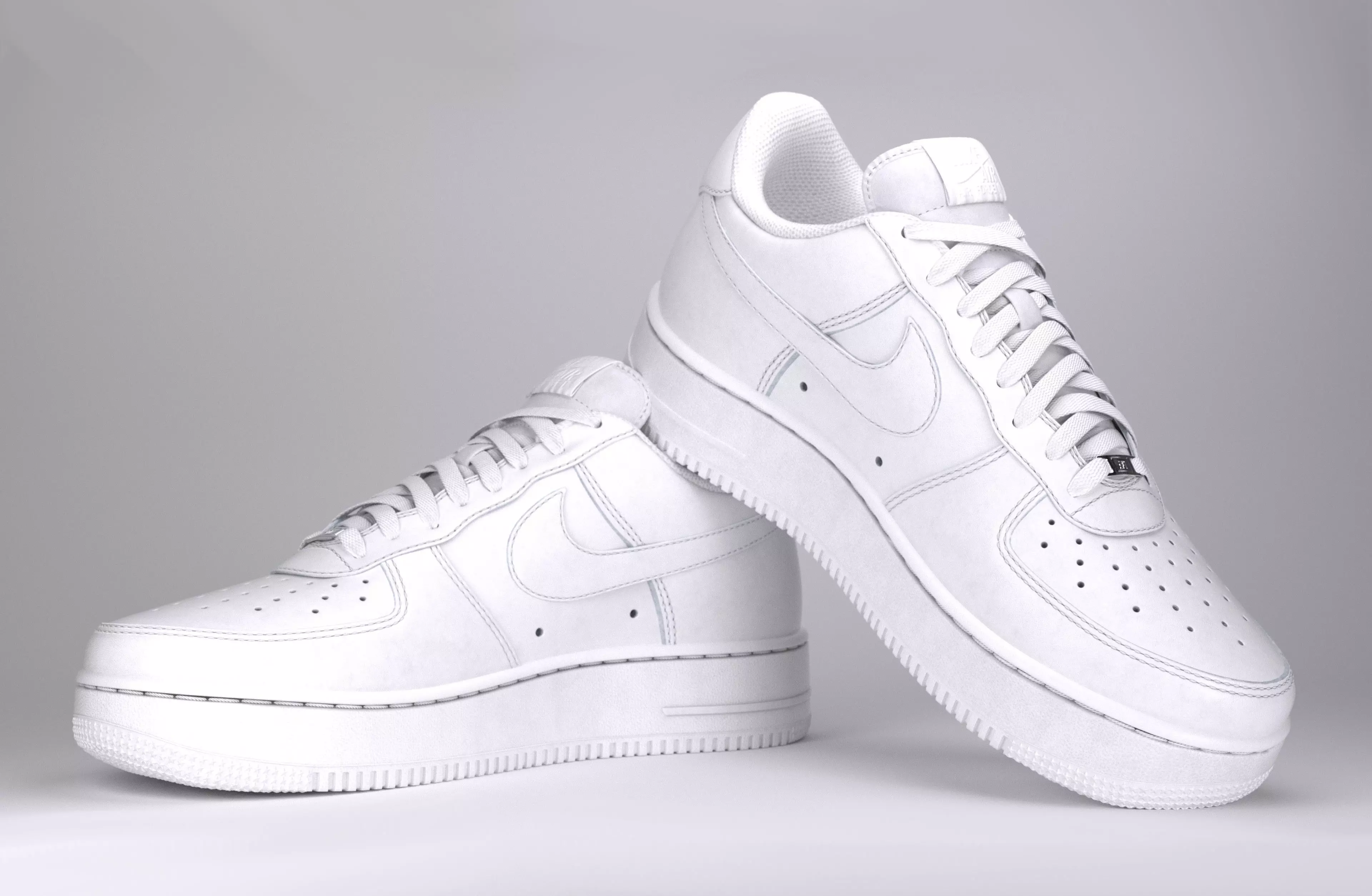 Nike Air Force 1 in Triple White. The most popular sneaker on the planet, and a staple in many wadrobes. Made with a high attention to detail, this rendition of the shoe aims provide the highest fidelity possible.