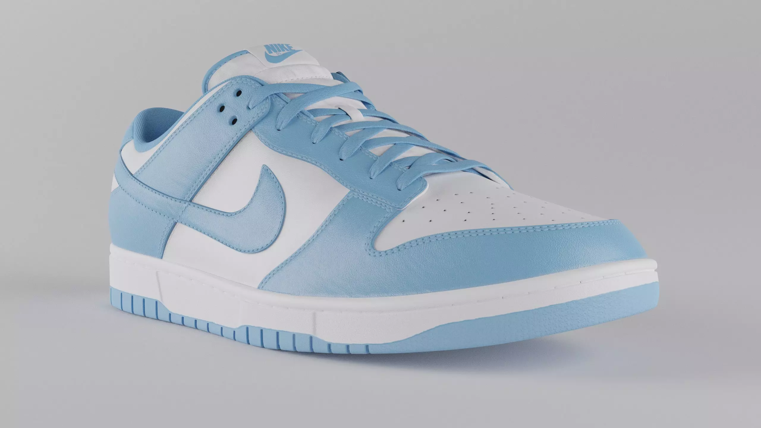 Nike Dunk Low in the UNC Colourway. Every detail was made in the recreation of this shoe, from the text on the medial side of the shoe to the subtlety of each material, nothing went overlooked. Stitches were sculpted by hand to achieve the highest quality