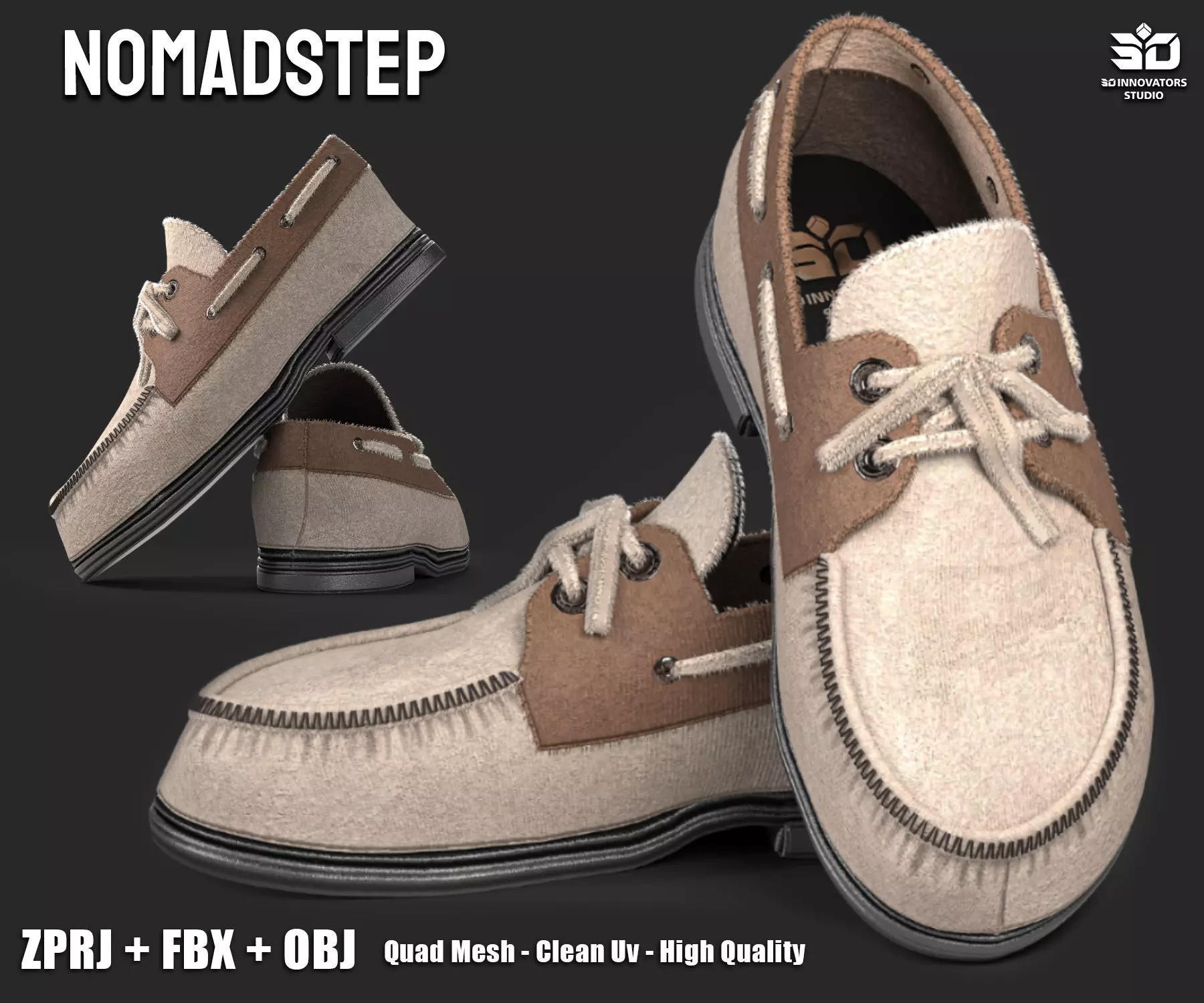 NomadStep is a highly detailed 3D model of a durable yet lightweight shoe, perfect for professional renders, animations, and game development. This model is designed with clean UVs and quad-based mesh to provide an optimal and seamless experience for users.