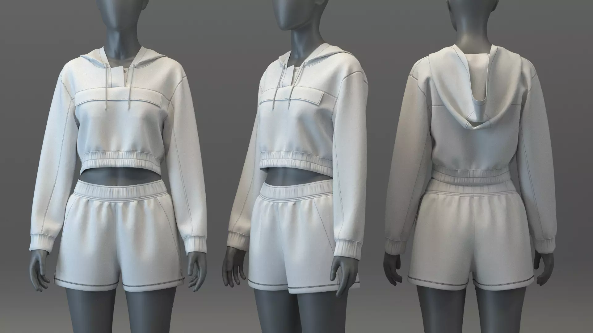 Shorts• Main Fabric: Nylon (VMOD Library)• Garterized waistband• Relaxed fit• Displaced seam with with invisible zipper and mesh pockets• Side slit detail on hem• Finish: Includes Facing and stitches for a more realistic look when rendered