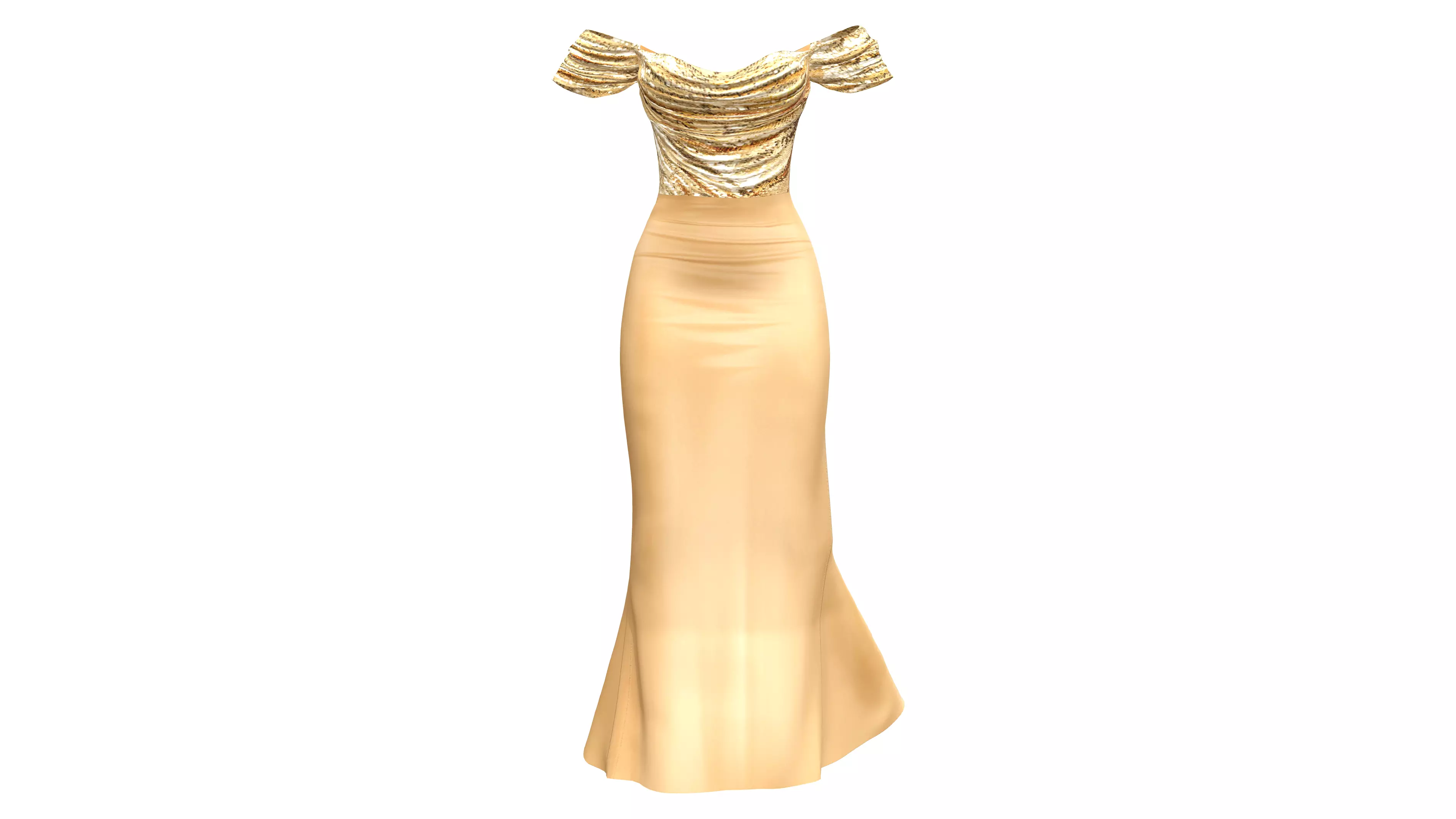 Off Shoulder Mermaid Tail Gown Low-poly 3D model