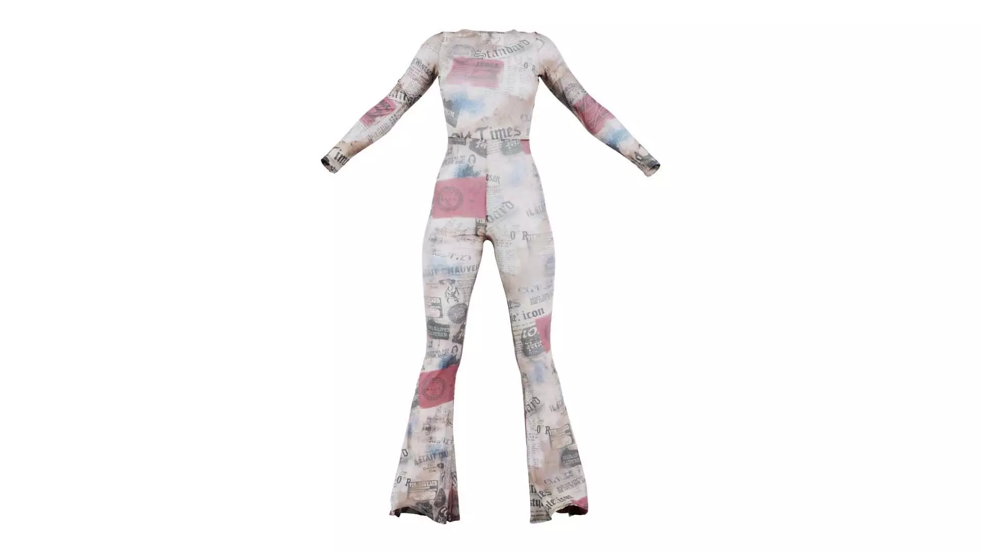 Polygonal Miniatures presents open back newspaper flared catsuit, a model from our 3D scanned catalogue. The model, a women's jumpsuit with a print on it, is obtained by photogrammetry, and scanned using SLR camera's.Processing takes place in Zbrush and Photoshop and the resulting 3D model has unwrapped, non overlapping UV's, and a texture and normal map. Before publishing, we make sure the model has real world scale (meters), correct shader setup and is centered at the origin.Apart from the various file formats, we also offer a Blender file with material and textures set-up, ready for export and rendering. More info can be found below: