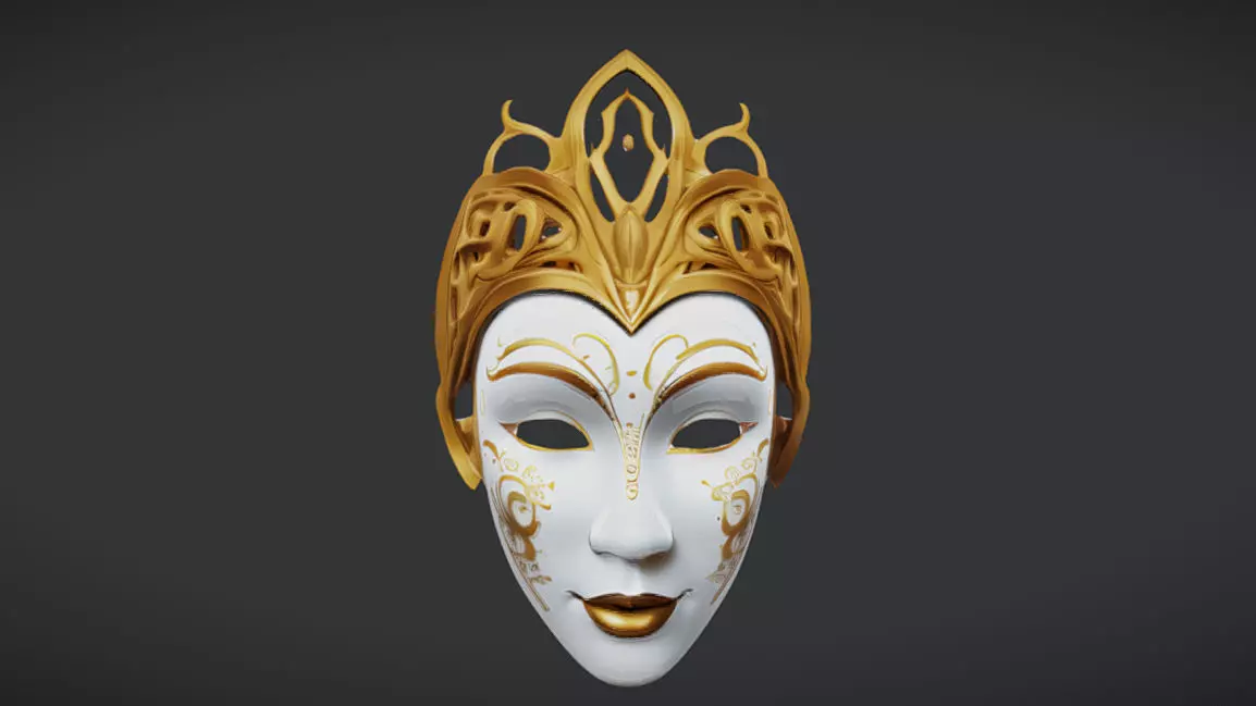 3D Model: Ornate Venetian MaskImmerse yourself in the elegance and mystery of Venetian artistry with this exquisitely designed Ornate Venetian Mask 3D Model. Featuring an intricate golden filigree crown and delicate decorative patterns, this mask blends royalty, fantasy, and masquerade sophistication into a stunning piece.