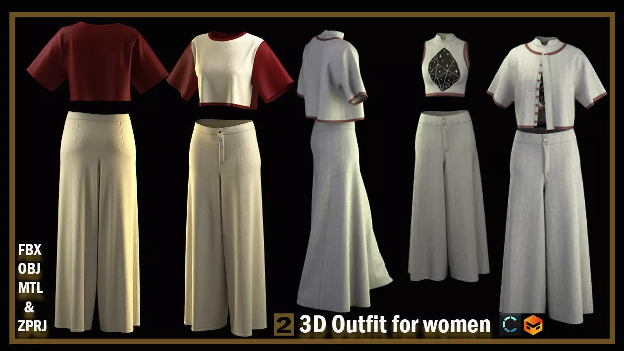 3d outfits for woman created & lighting & rendering and matereals in CLO3D